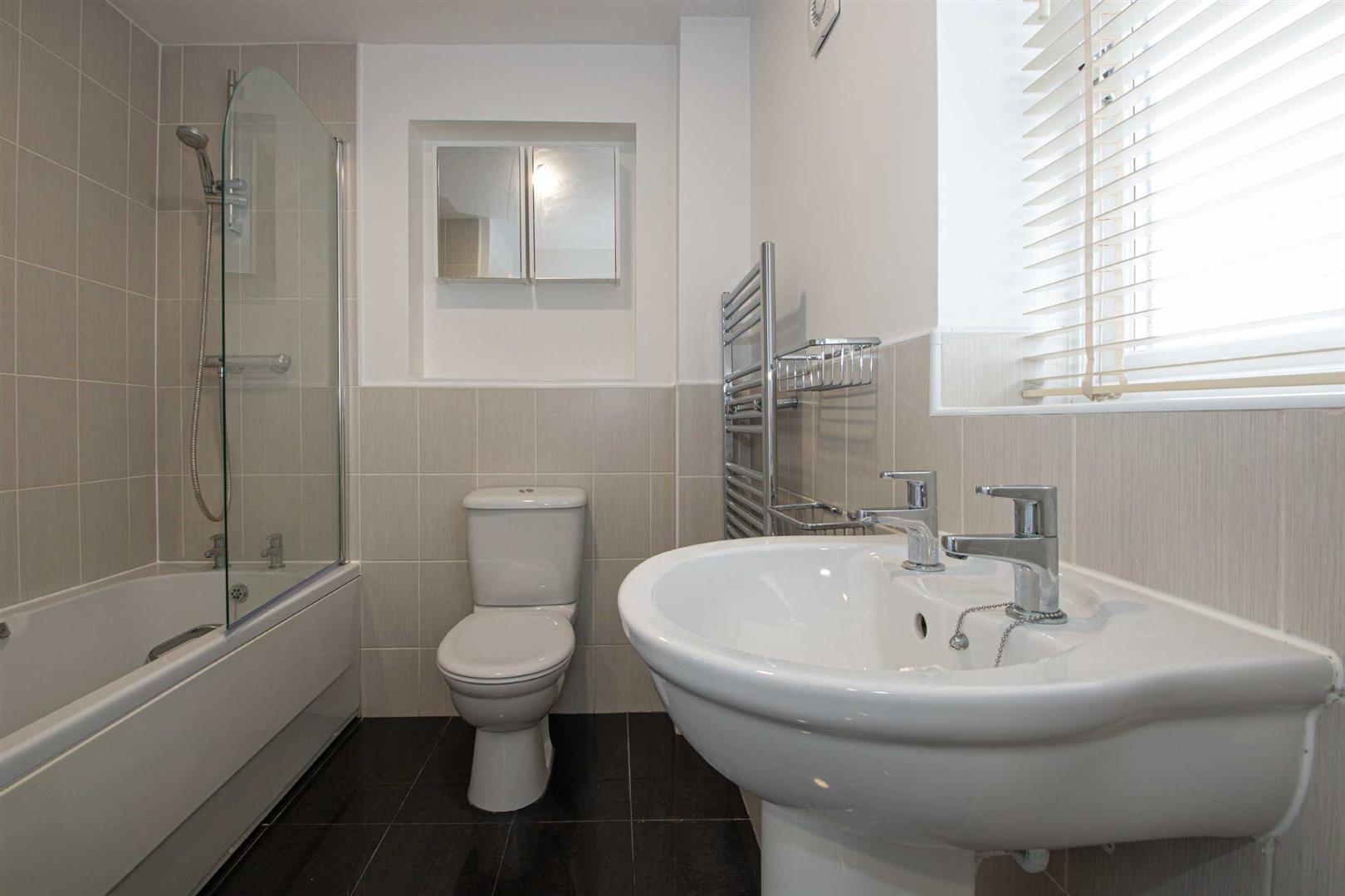 Double glazed window to rear. Three piece suite comprising panelled bath with shower over and glass shower screen, low level wc and wash hand basin. Heated towel rail. Tiled flooring.