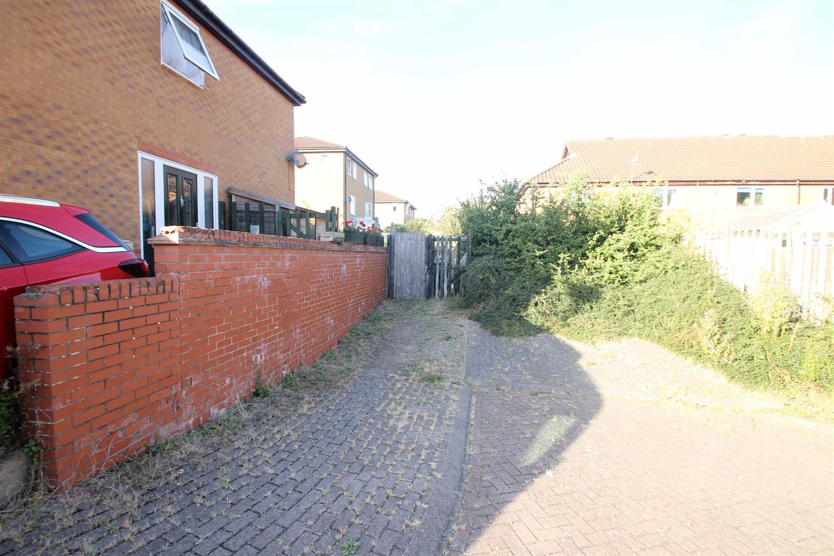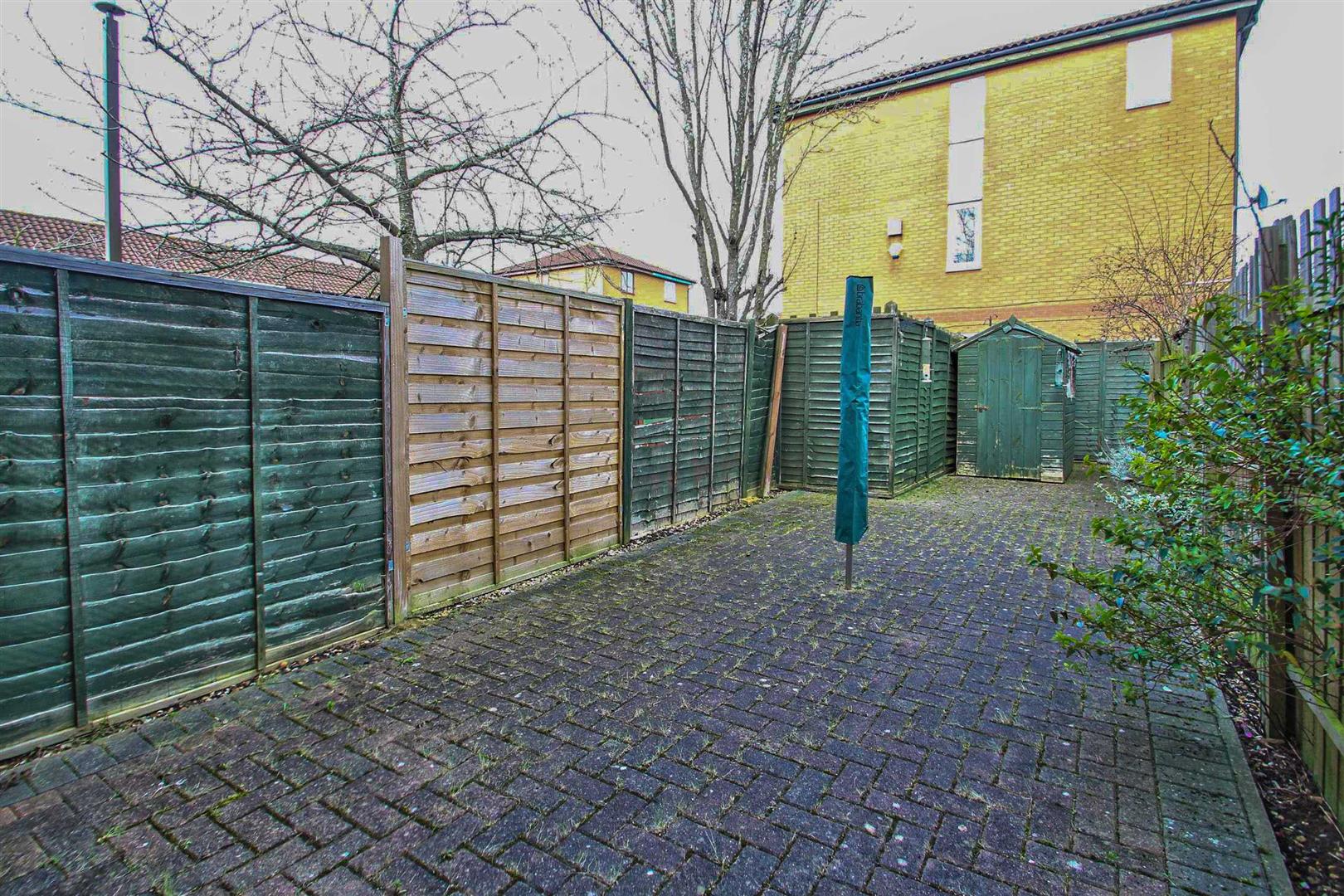 A re-paved block patio with garden shed. Gated rear access.