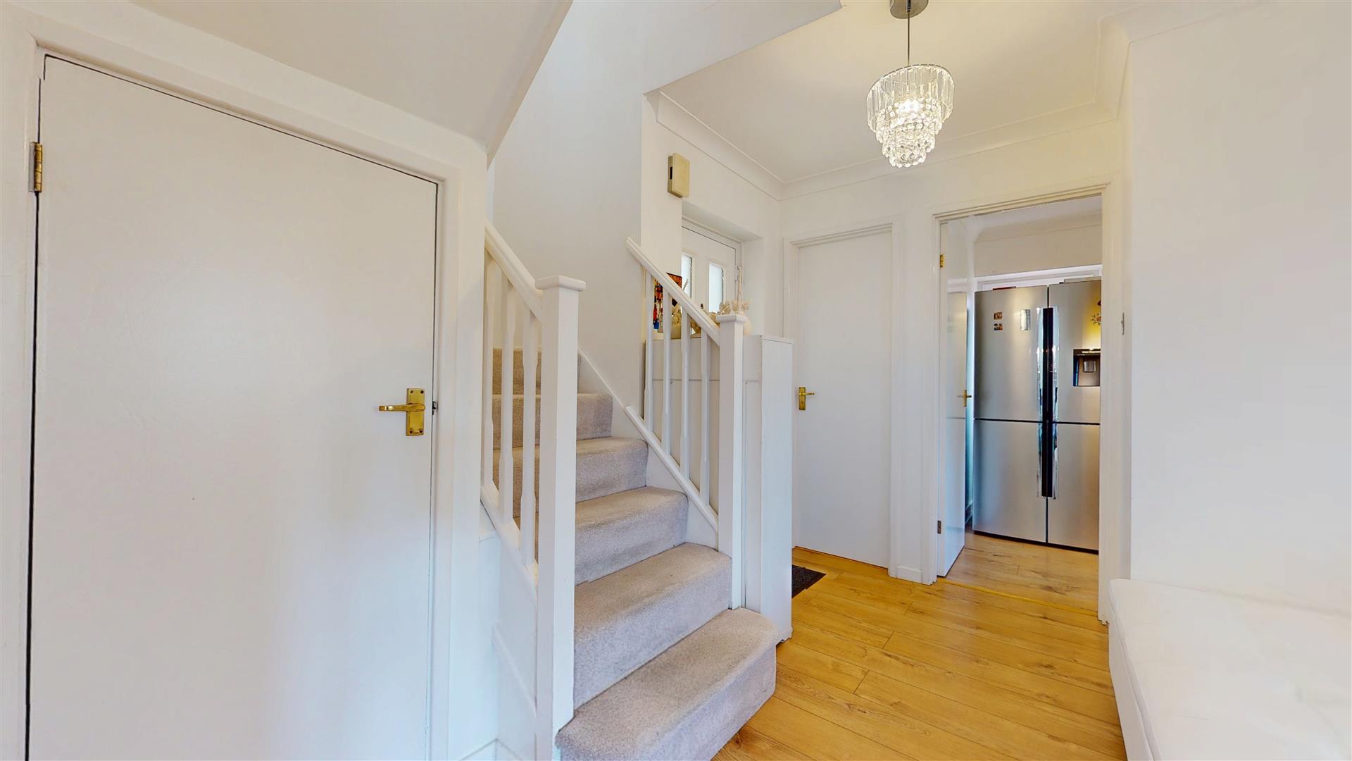 Doors to upstairs rooms. Feature double glazed window to front. Airing cupboard housing water tank and storage shelving. Access to loft.