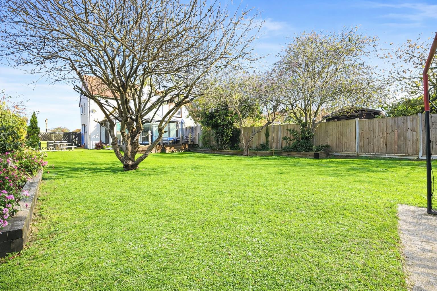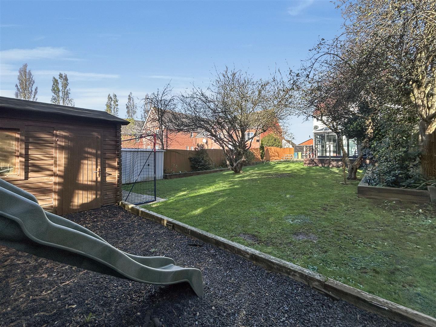 Enclosed and secluded rear garden, laid mainly to lawn with tree flower and shrub border. Composite decking area. Driveway and shingle area