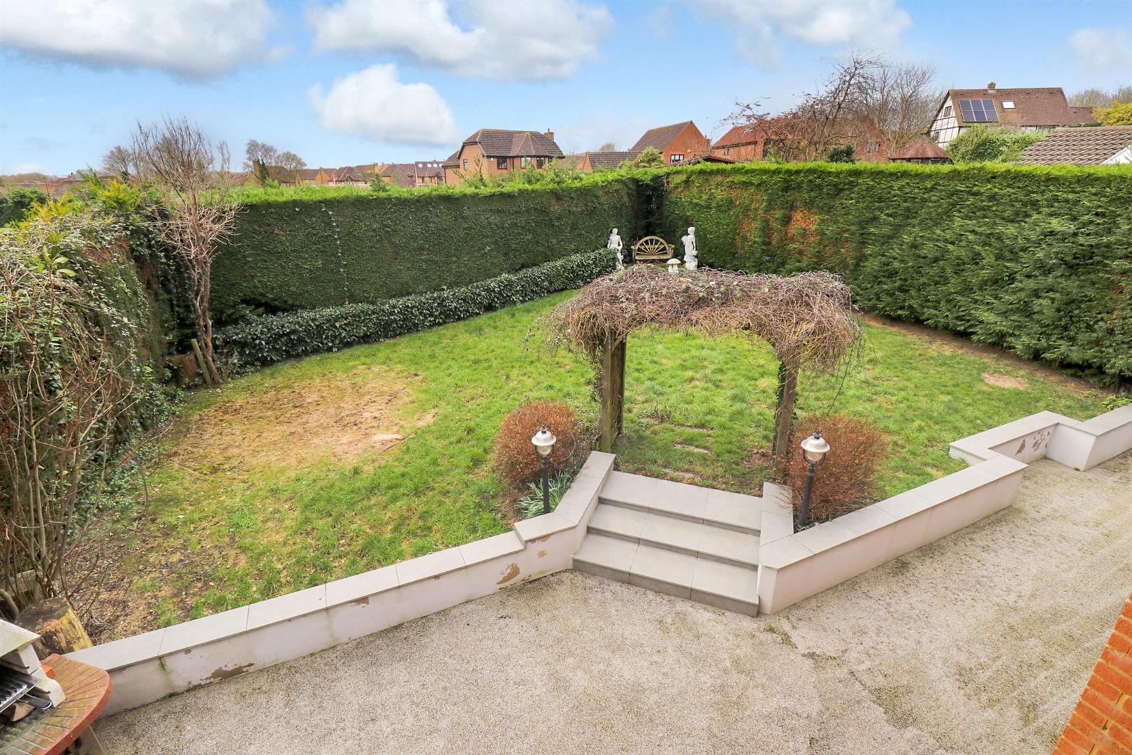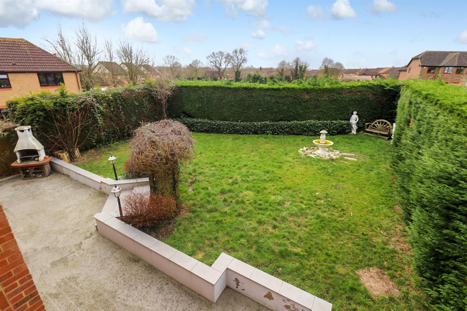 An enclosed and secluded rear garden, laid mainly to lawn with patio area. Wooden fence surround. Outdoor barbecue. Mature tree, flower and shrub borders. Gated side access. Outside tap and lighting.