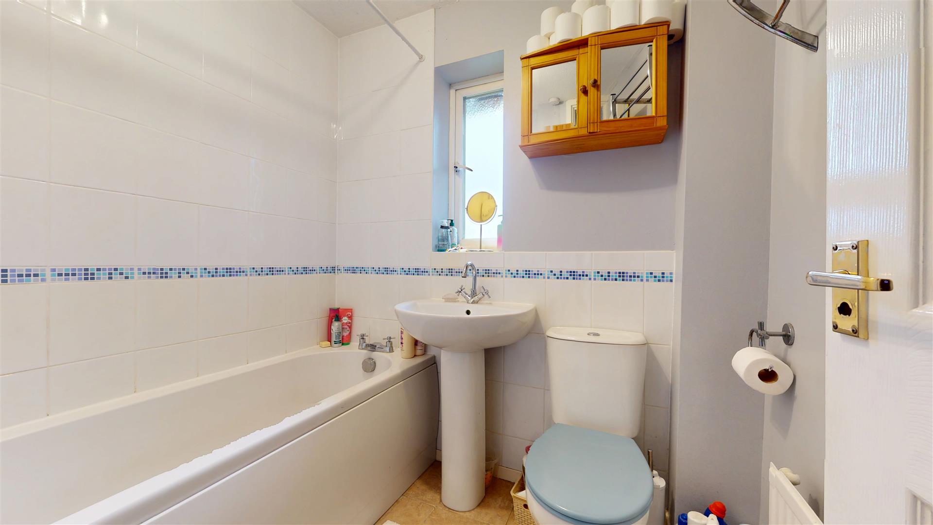 Double glazed obscure window to front. Three piece suite comprising bath with electric shower, wash hand basin and close coupled wc. Radiator. Tiled flooring.