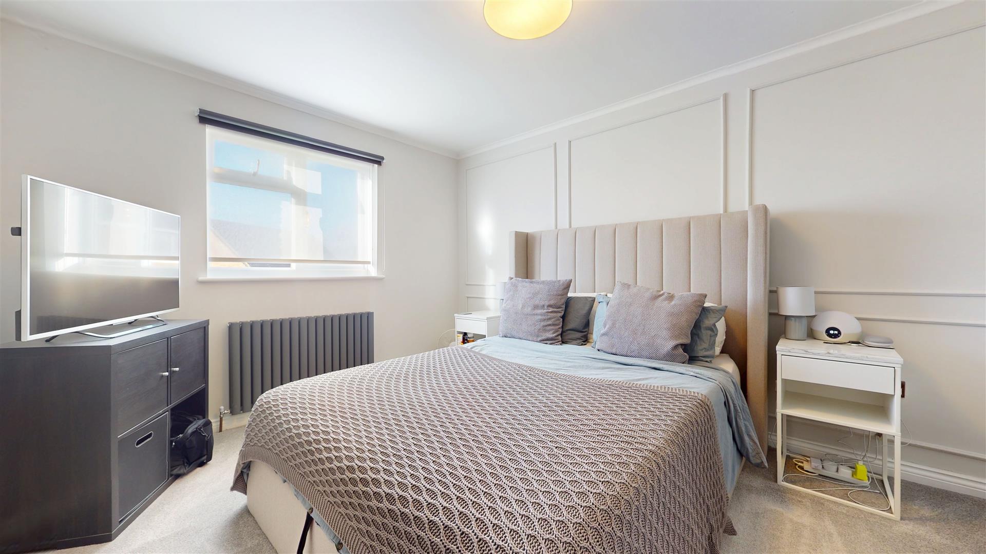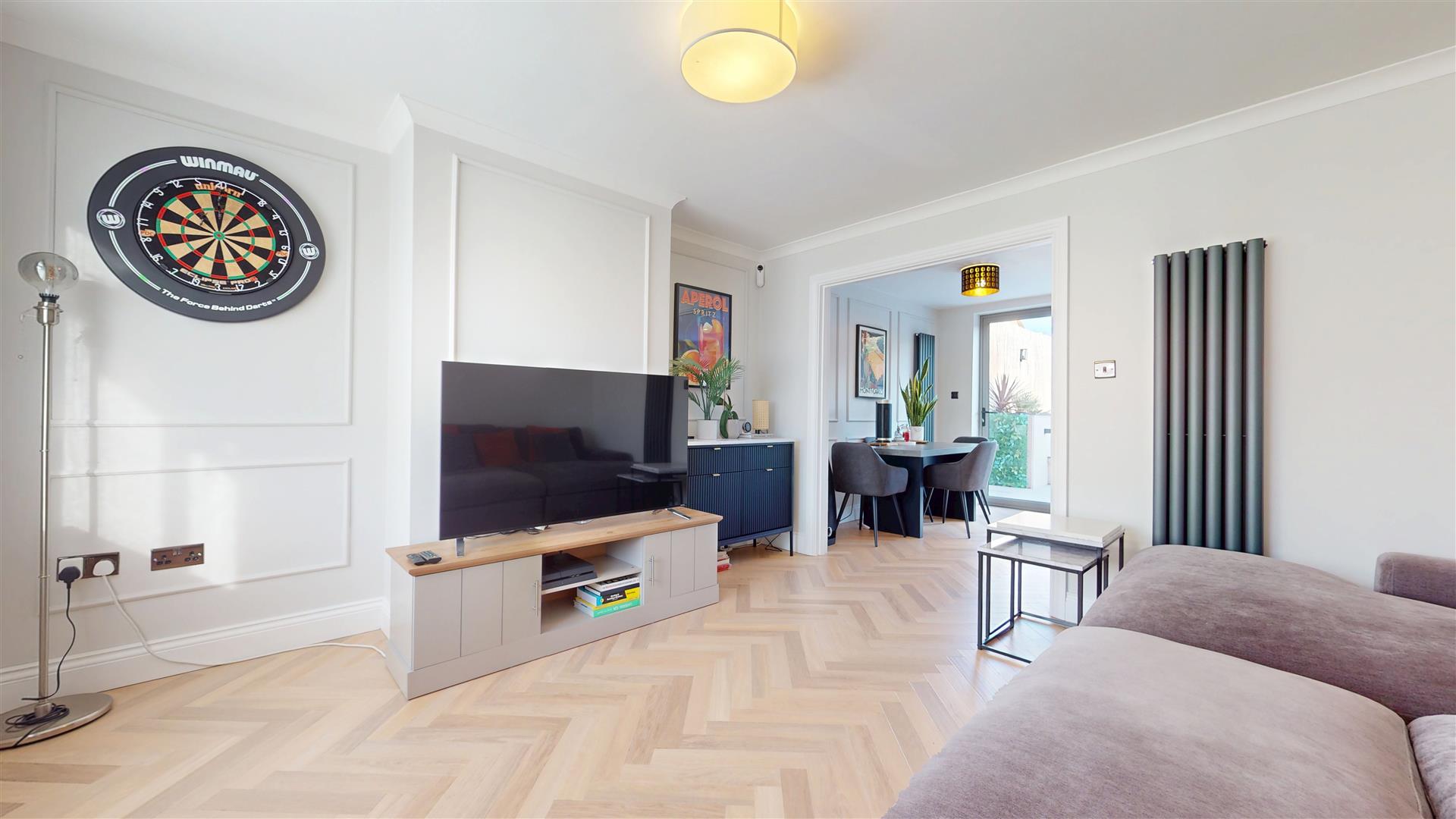 Double glazed window to front. Feature panelled walls. Vertical radiator. Television and internet points. Herringbone Karndean flooring. Arch to kitchen/dining room.