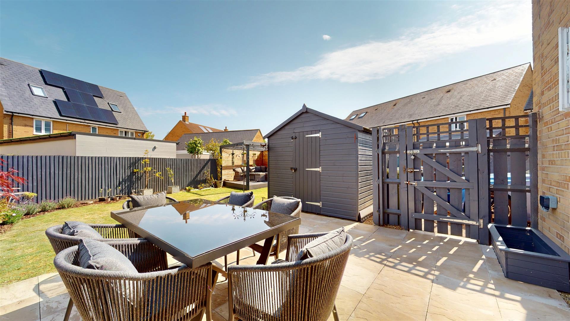 Enclosed and laid mainly to lawn with patio area and composite decking area. Outside shed. Brick and wooden fence surround. Gated access. Outside power and lighting. Outside tap.