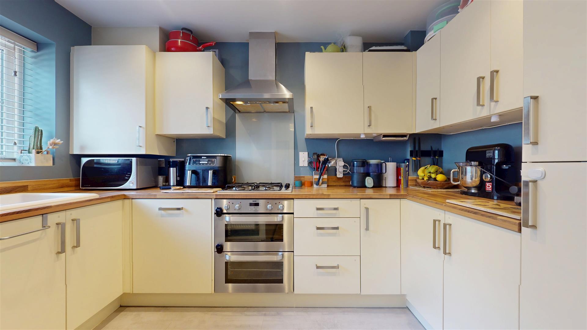 Double glazed window to . Fitted with a range of wall and base units with worksurfaces incorporating one and half bowl sink drainer and mixer tap. Built in oven and four ring gas hob with extractor. Built in fridge freezer and dishwasher Plumbing for washing machine and dishwasher. Concealed wall mounted boiler Skimmed ceiling with inset lighting. Radiator. Double glazed window to front.