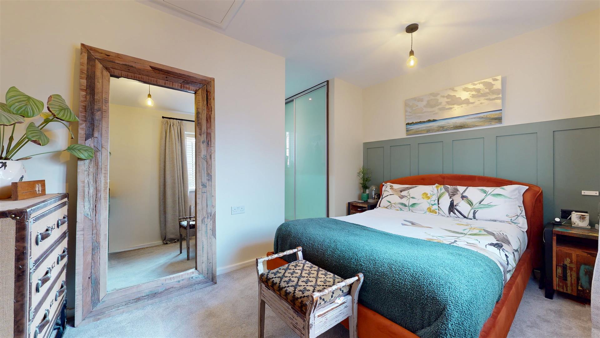 Double door wardrobe. Double glazed window to rear. Skimmed ceiling with inset lighting Door to re-fitted ensuite.
