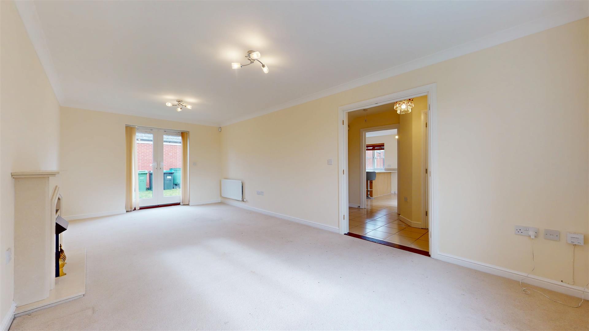 Dual aspect double glazed window to front and double glazed French doors to rear. Two radiators. Fireplace and surround.