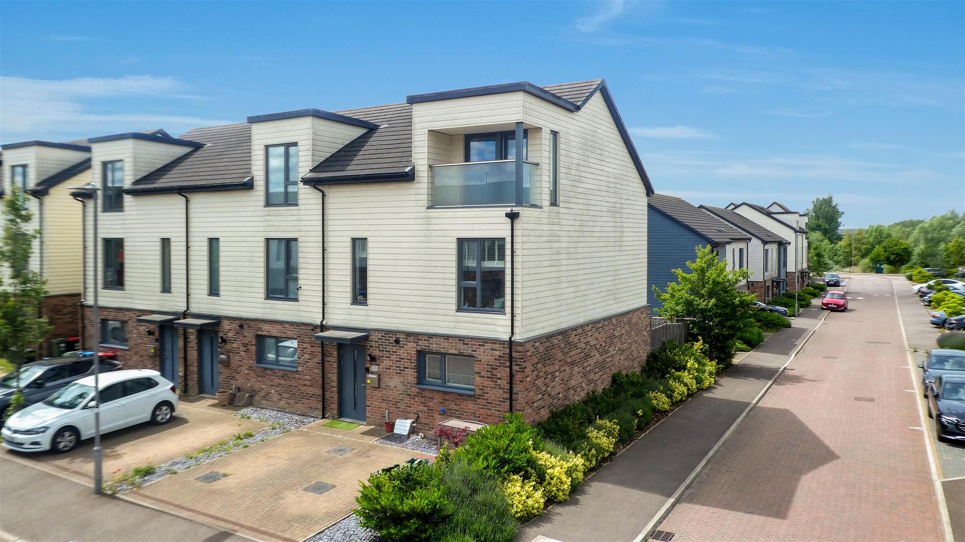 This beautifully presented and generously proportioned eco family home spans three floors and offers approximately 128 square metres of versatile living space, perfect for modern family life. Built with energy efficiency in mind, this home features many impressive features not commonly found on homes of this age including triple glazing, extra insulation, digital thermostatic valves on the radiators that can be app controlled, smart lighting system and an air flow system that filters air all around the property.Upon entering, you are welcomed by a bright and inviting entrance hall, which leads to a stylish ground floor cloakroom and into the heart of the home – a contemporary open-plan kitchen, dining, and living area. The well-appointed kitchen and dining space sit to the front, while the living area extends to the rear, offering a seamless flow and access to the low-maintenance rear garden – ideal for both relaxing and entertaining.The first floor features a spacious landing that provides access to three well-sized bedrooms and a modern family bathroom, offering ample space for growing families or visiting guests.Occupying the top floor is the impressive main bedroom suite, which boasts generous proportions, walk-in storage on the landing, a large en-suite shower room, and access to a private balcony – a perfect spot to unwind in peace.Externally, the property benefits from a private, low-maintenance rear garden, allocated driveway parking for two vehicles at the front, and additional visitor parking within the development.Conveniently located within walking distance of local shops, larger supermarkets, and a variety of schools, this home also offers excellent transport links, with easy access to motorway junctions and Central Milton Keynes Main Line train station.Energy rating: BCouncil tax band: E