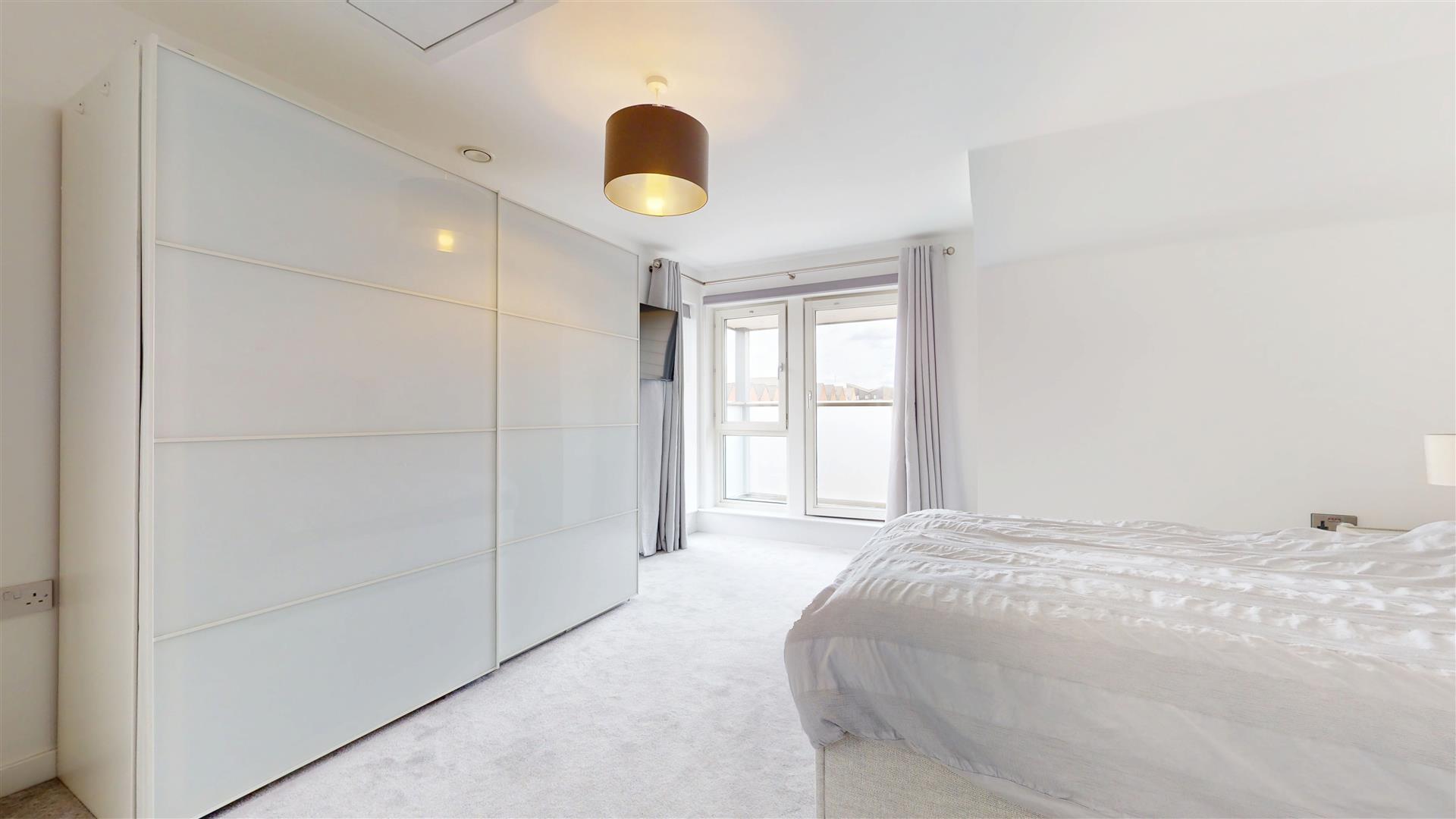 Triple glazed window to front and side. Triple glazed door to front leading to balcony. Telephone point. Radiator. Air filtration system. Access to boarded loft space via drop down ladder.