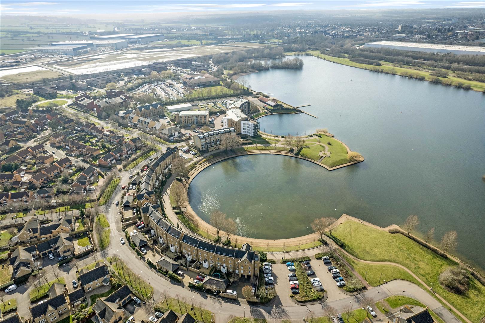 Flat sits right at the centre of Caldecotte Lake’s rounded shoreline — the most desirable vantage point.