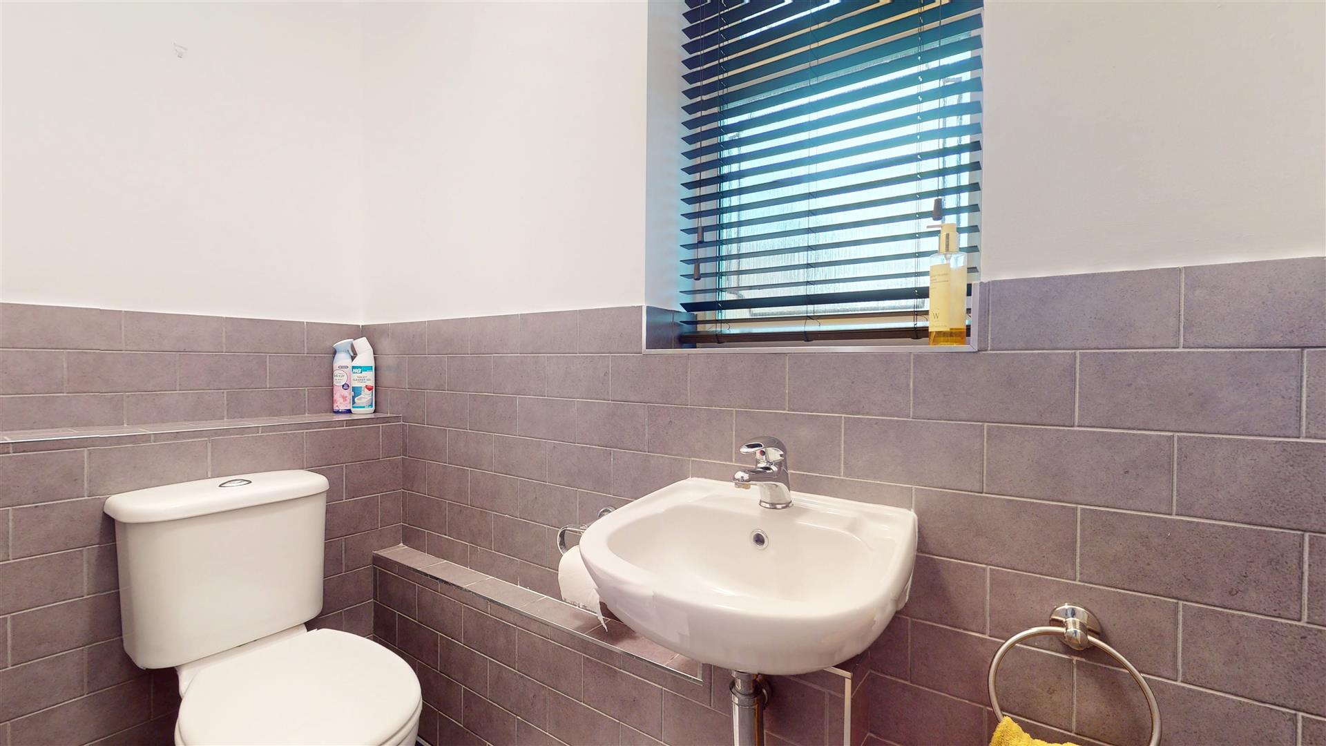 Double glazed obscure window to side. Two piece suite comprising close coupled wc and wash hand basin. Radiator.