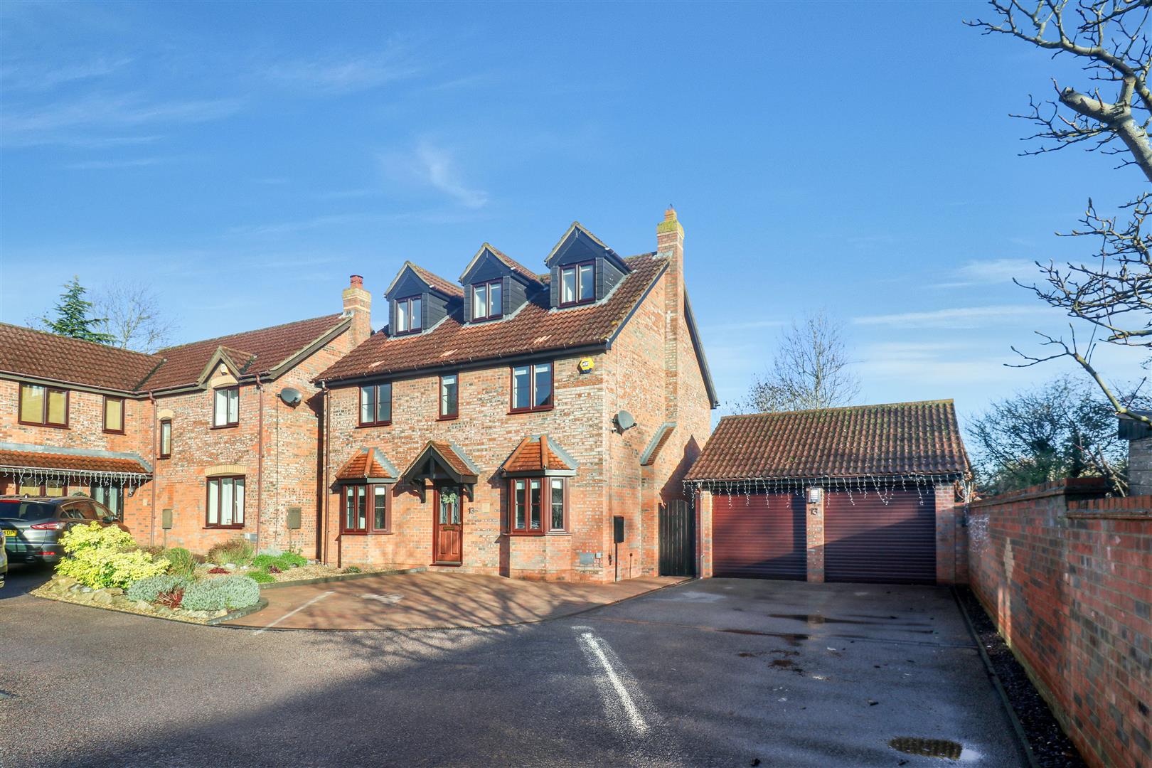 - Detached double garage with electric doors