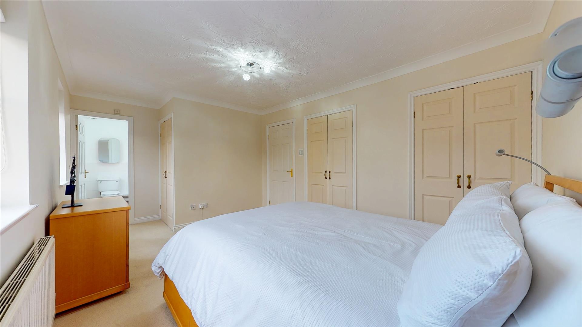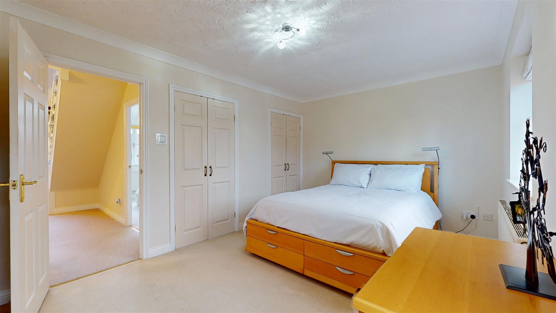 Double door built in wardrobe. Two double glazed windows to front. Coving to textured ceiling. Door to ensuite.