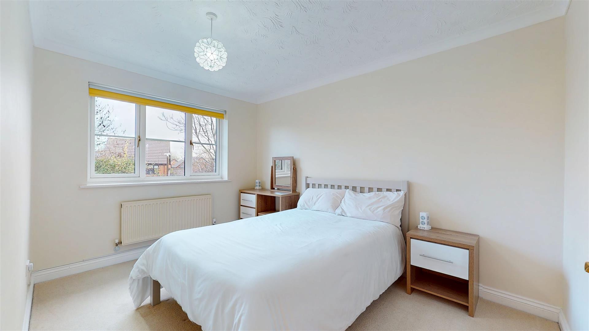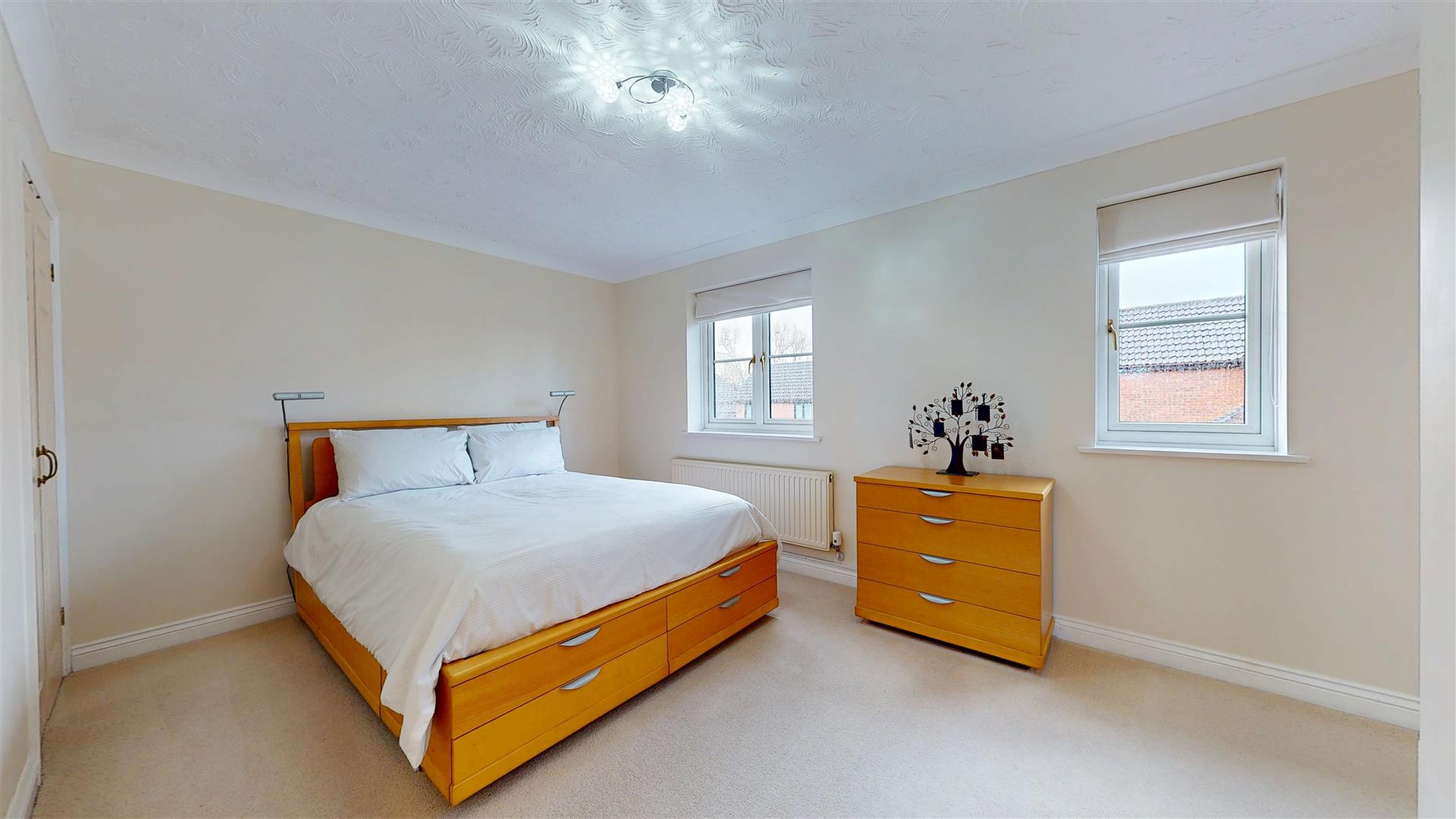 Restricted head height. Dual aspect double glazed window to front and side. Fitted soft close six door wardrobes. Skimmed ceiling with inset lighting. Radiator.