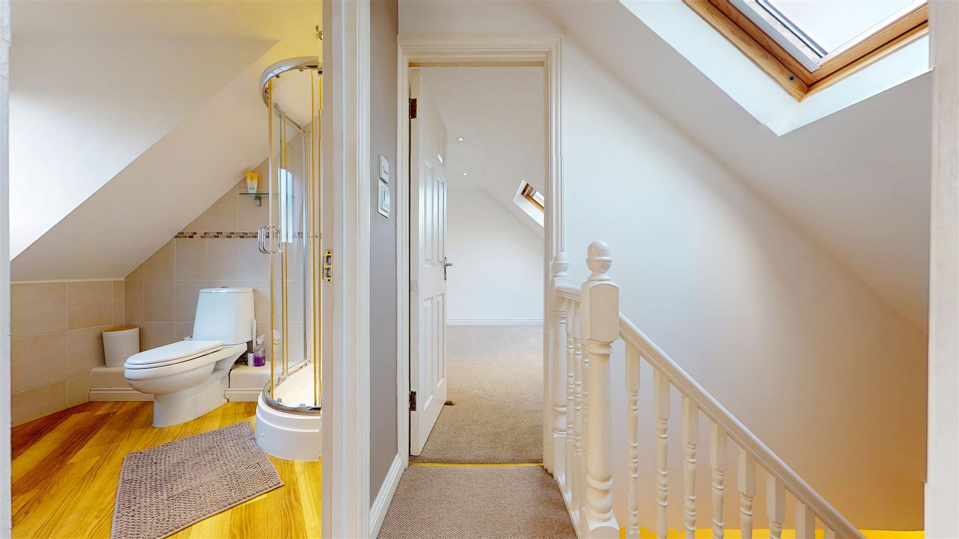 Double glazed sky light to rear. Door to shower room, bedrooms two and three.