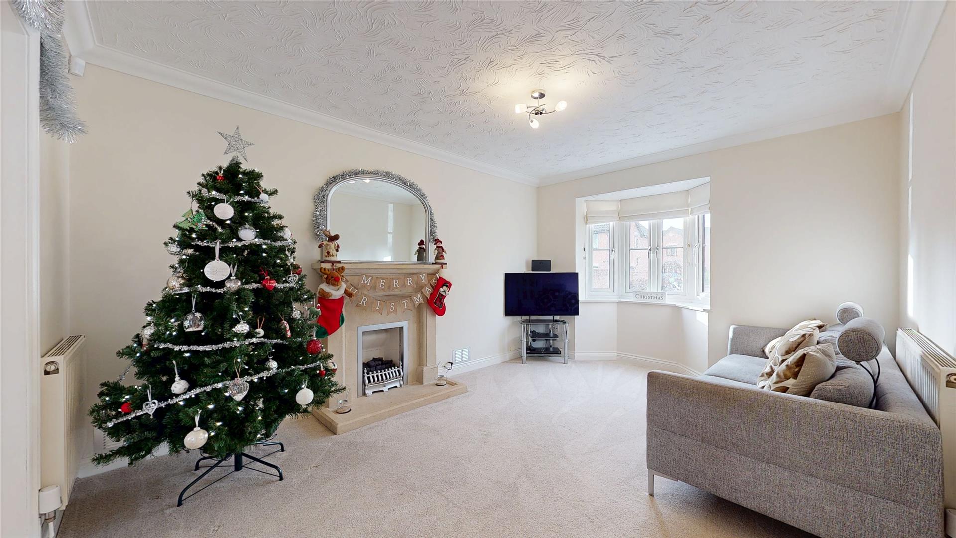 Coving to textured ceiling. Feature fireplace and surround. Double glazed bay window to front.