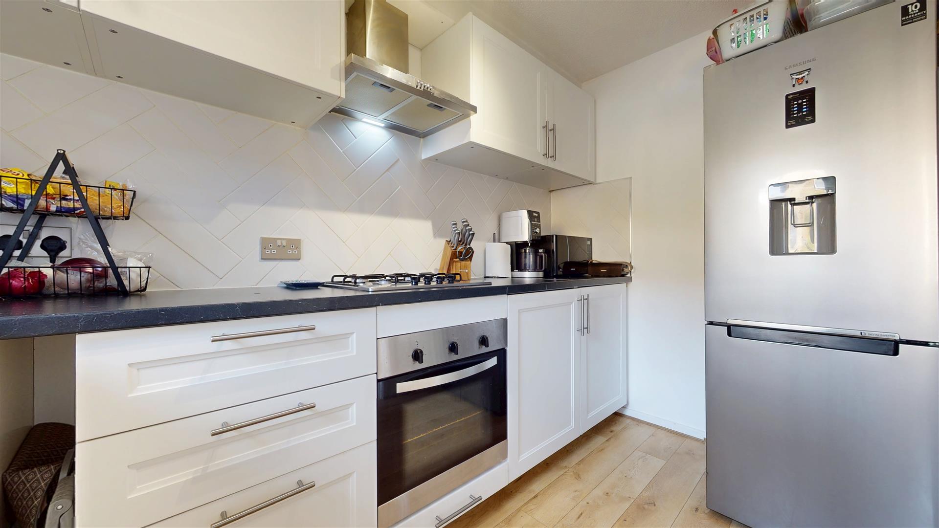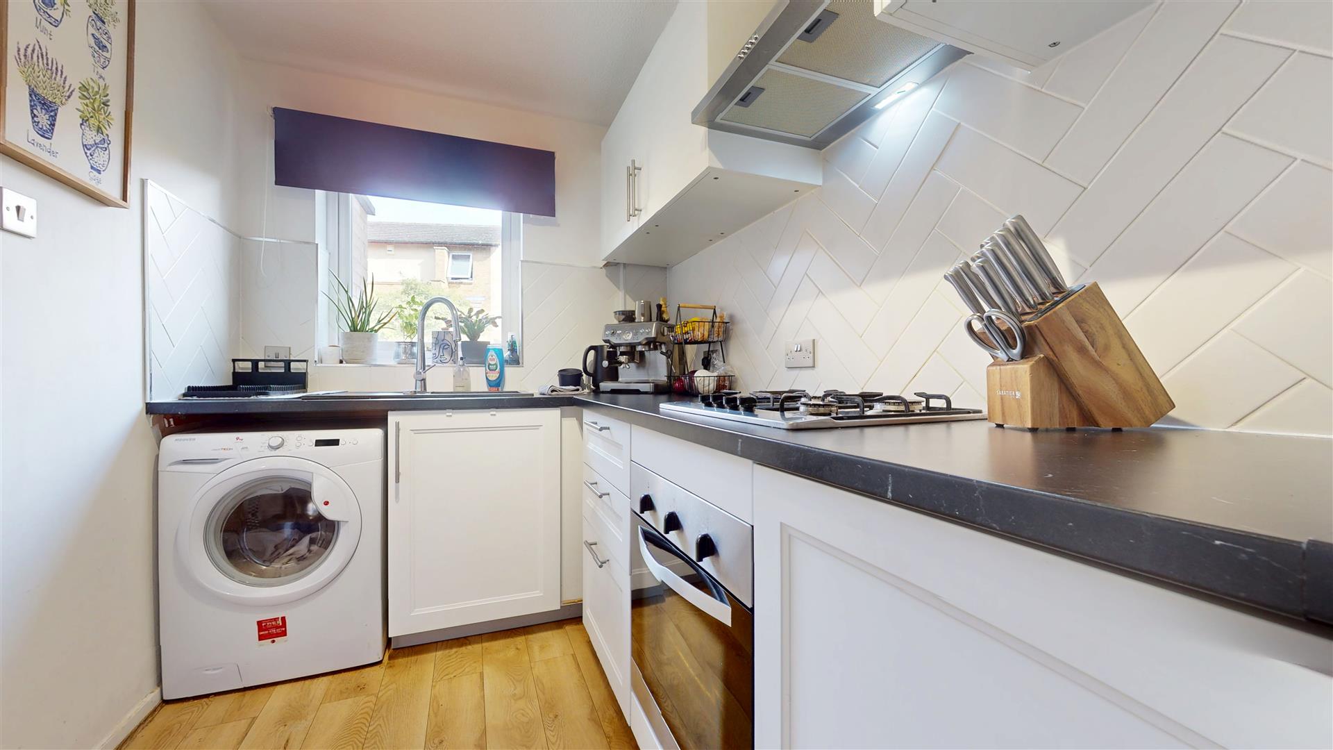 Double glazed window to front. Re-fitted with a range of wall and base units with worksurfaces incorporating sink drainer unit. Electric oven and four ring hob with extractor hood over. Space for fridge freezer. Plumbing for washing machine. Radiator.