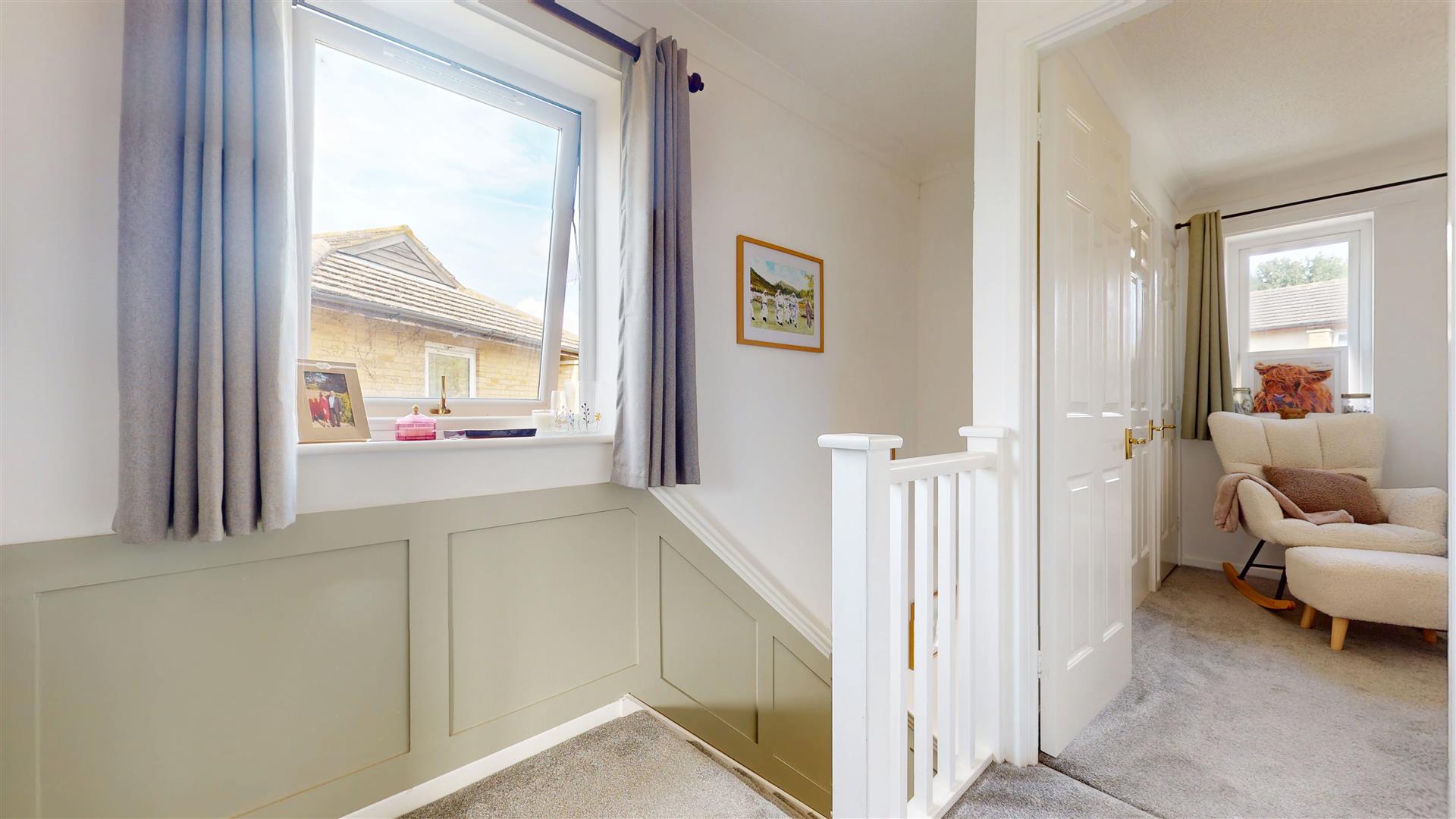 Stairs from entrance hall. Double glazed window to side. Access to part boarded loft space. Part panelled walls.