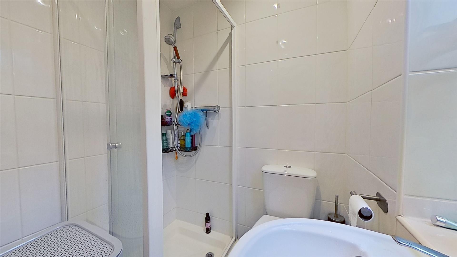 Double glazed window to front. Double door built in cupboard. Tiled shower cubicle and wall mounted shower.