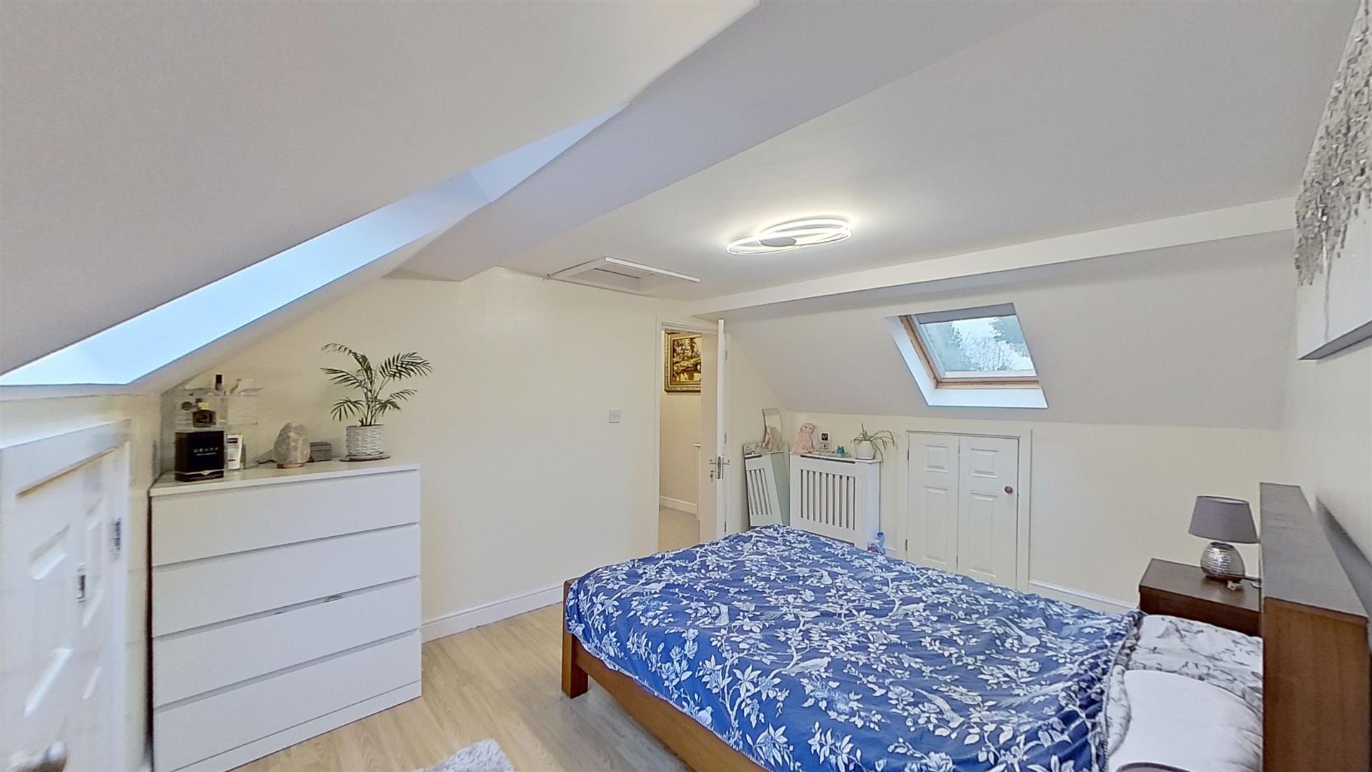 Dual aspect room with double glazed sky lights to front and rear. Double eaves storage cupboards.