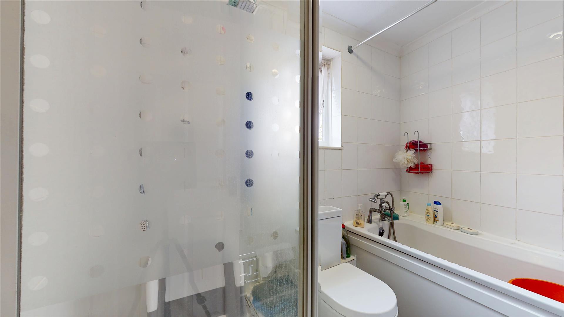 Double glazed window to the front. Bath, Shower cubicle with mains shower. wash hand basin, heated towel rail.