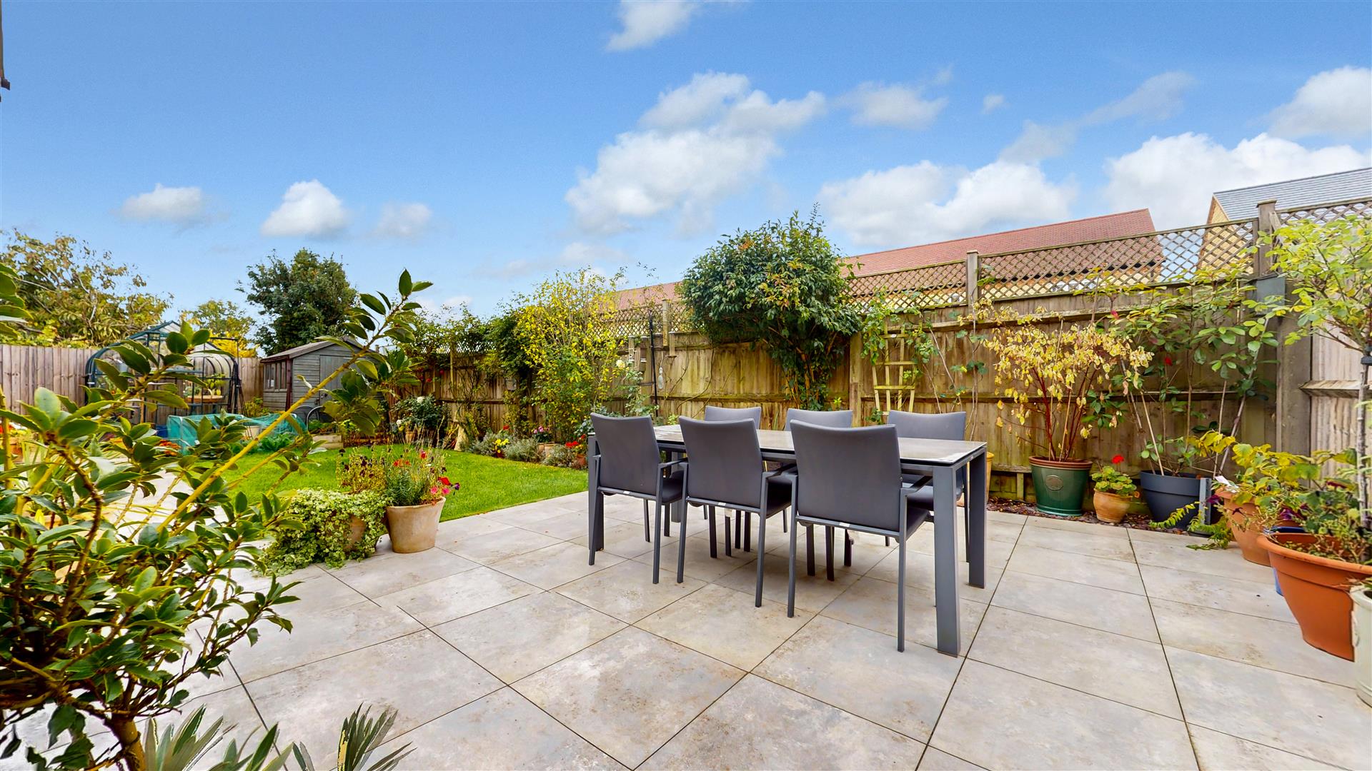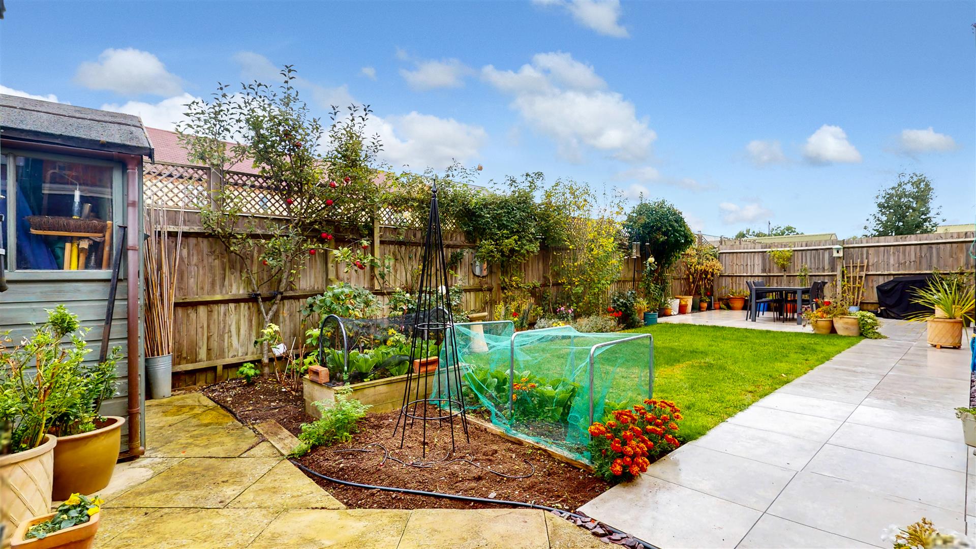 Rear width porcelain tiled patio. Gated pedestrian access from side of house. A selection of manicured flower beds and borders with mature trees, plants, roses, apple tree and vegetable garden. Garden shed (8’ x 6’) and greenhouse (8’ x 6’). Outside tap. 240v Power outlet for electric BBQ/lighting.