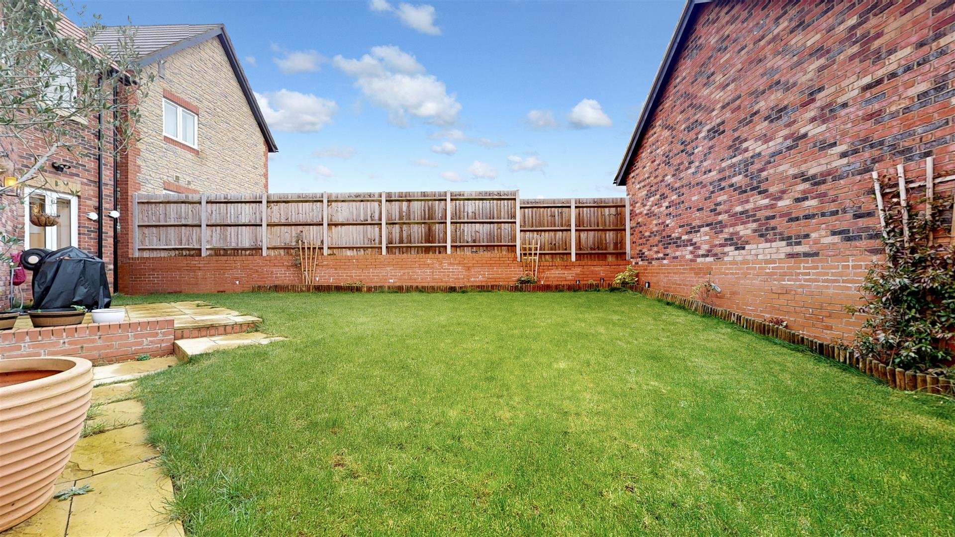 Laid to lawn with rear width patio area and beds and borders. Outside tap. Timber shed. Gated access to front.