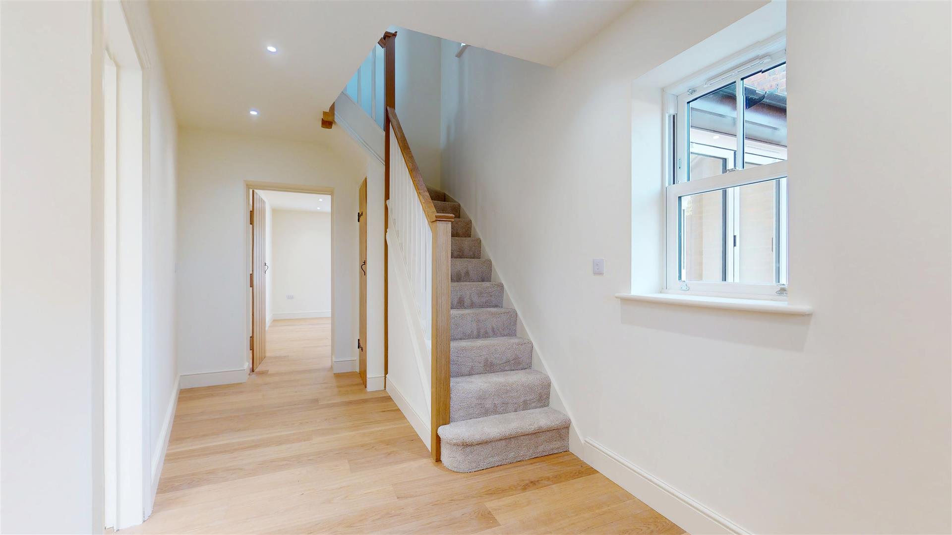 Composite door to rear. Double glazed sash window to side. Radiator. Engineered oak flooring. Stairs to first floor landing with understairs storage cupboard.