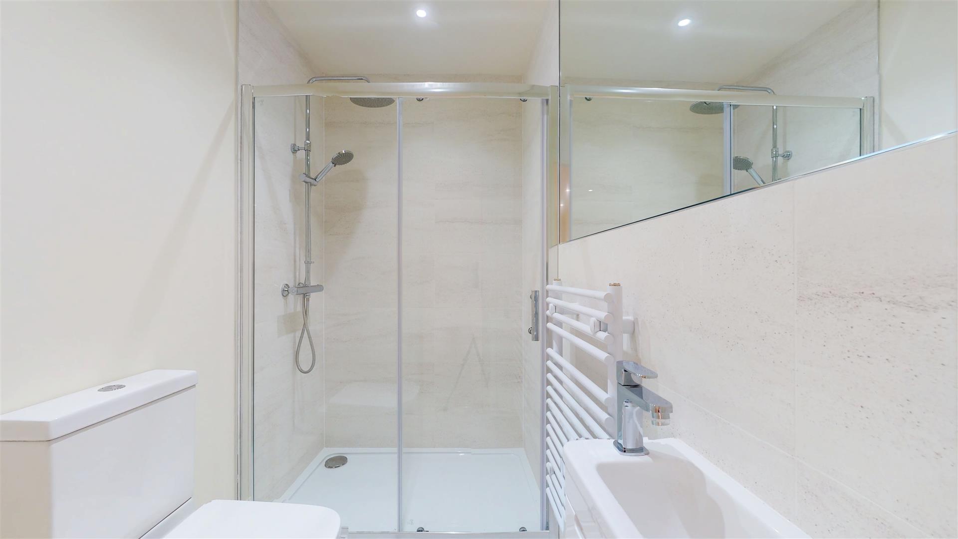 Double glazed sash window to rear. Three piece suite comprising double shower cubicle with mains shower, wash hand basin and close coupled wc. Heated towel rail. Fitted mirror. LED lighting. Extractor fan. Ceramic tiled flooring.