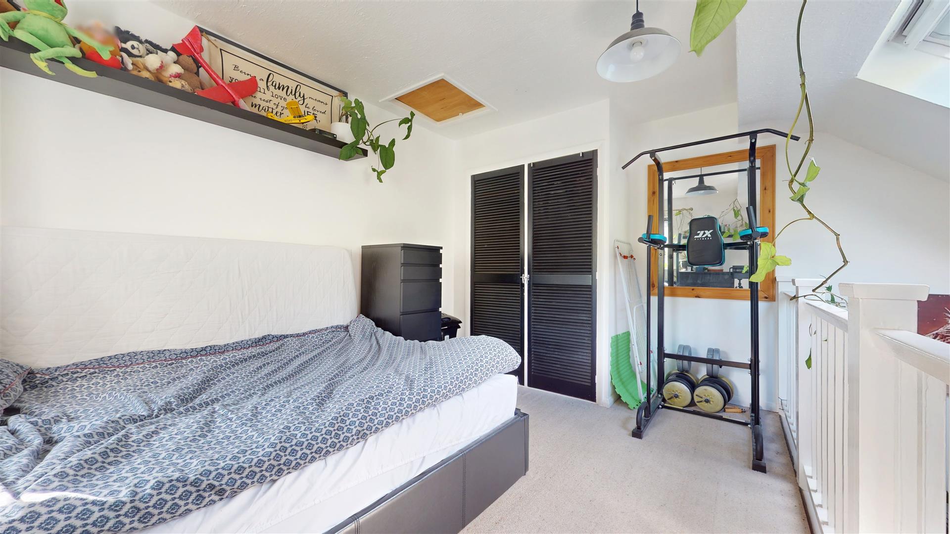 Double glazed window to front. Double glazed sky light window to side with fitted blind. Built in wardrobes. Radiator. Access to part boarded loft space housing combination boiler.