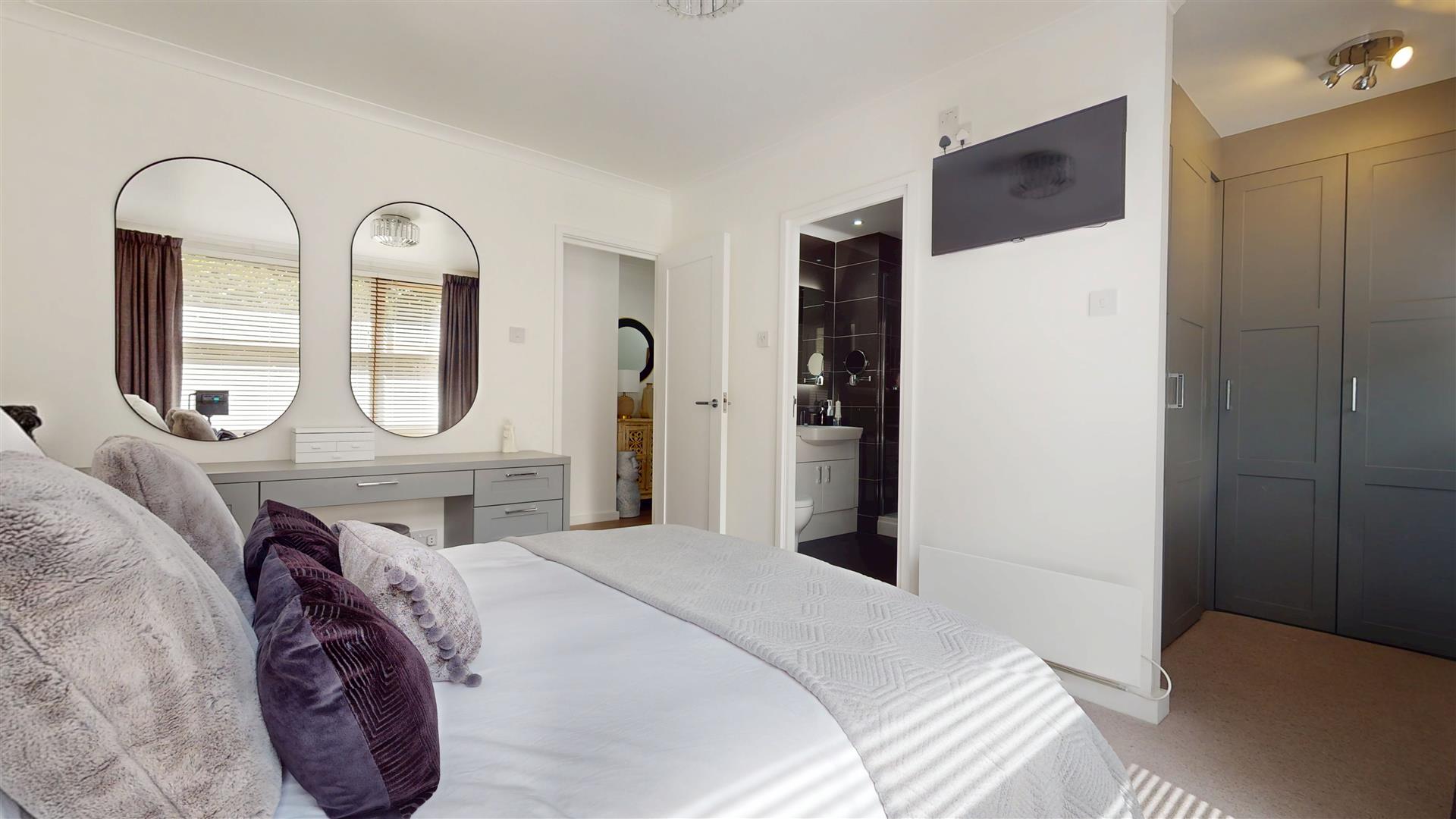 Two double glazed windows to side with fitted blinds. Built in wardrobes in dressing area. Electric heater Fitted bedroom furniture. Door to ensuite.