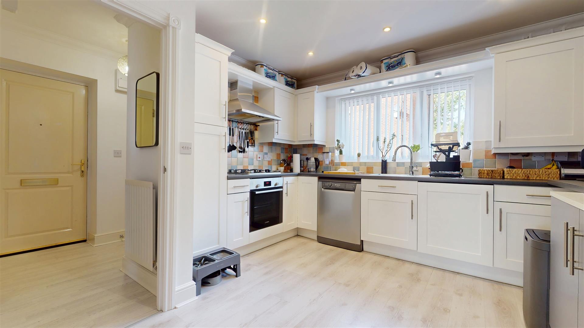 Double glazed window tot he rear. Kitchen fitted with a range of wall and base units and work surfaces. One and a half stainless steel sink and drainer with mixer tap. Electric oven, four ring gas hob wit extractor over. Plubing for dishwasher. Plumbing for washing machine. Space for fridge freezer. Plumbing for Wall mounted combination boiler. Double doors to living room.