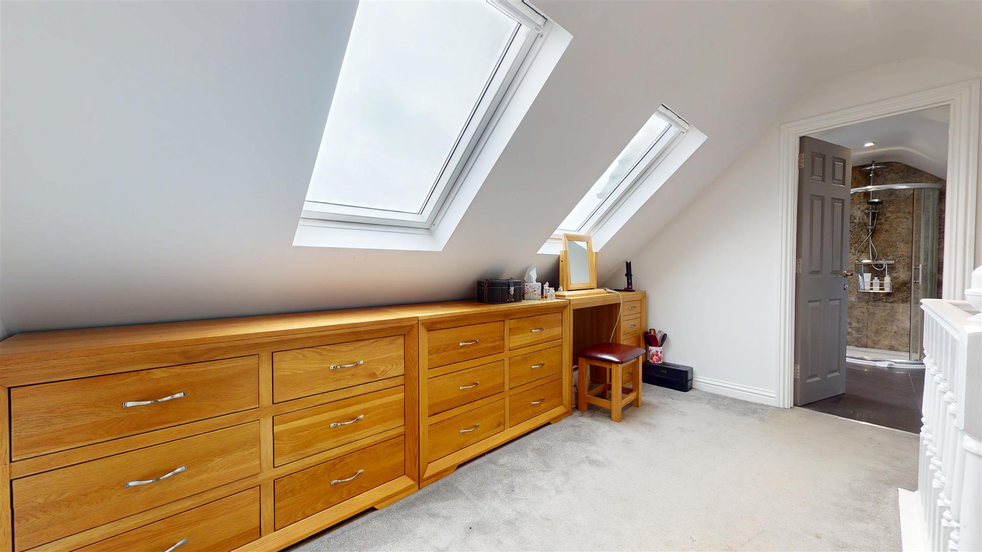 Stairs from first floor. Two double glazed sky light windows to rear. Recess hanging rails and storage space.