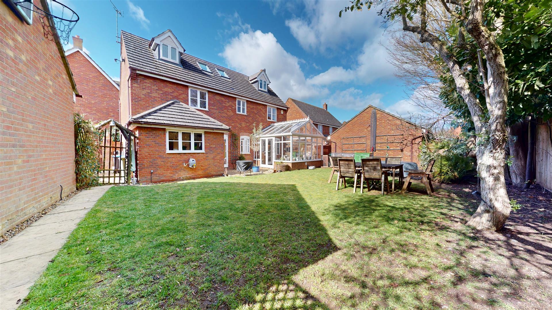 A substantial detached family home, superbly positioned within a highly sought-after area of the Middleton development in Milton Keynes. This impressive property has been extensively improved by the current owners and offers generous, flexible accommodation arranged over three floors.The standout feature is the converted top floor, now forming an exceptional principal bedroom suite complete with a stylish four-piece bathroom, creating a private and luxurious retreat. In total, the property offers five well-proportioned double bedrooms. The first floor accommodates four further double bedrooms, including one with a refitted en-suite shower room, alongside a contemporary four-piece family bathroom.On the ground floor, a welcoming entrance hall provides access to all principal rooms. There is a spacious dual-aspect sitting room which flows through to a large conservatory, offering excellent additional living space and views over the rear garden. A formal dining room provides an ideal setting for entertaining, while the well-appointed, re-fitted kitchen/breakfast room is complemented by a separate utility room and a convenient cloakroom.Externally, the property benefits from gated driveway parking for up to four vehicles, leading to a detached double garage. The front garden adds kerb appeal, while the generous rear garden has been thoughtfully landscaped with mature trees and established planting, creating a private and tranquil outdoor environment.Ideally located within walking distance of highly regarded local schools, the property also enjoys excellent access to Central Milton Keynes and the mainline train station, making it perfectly suited for families and commuters alike.