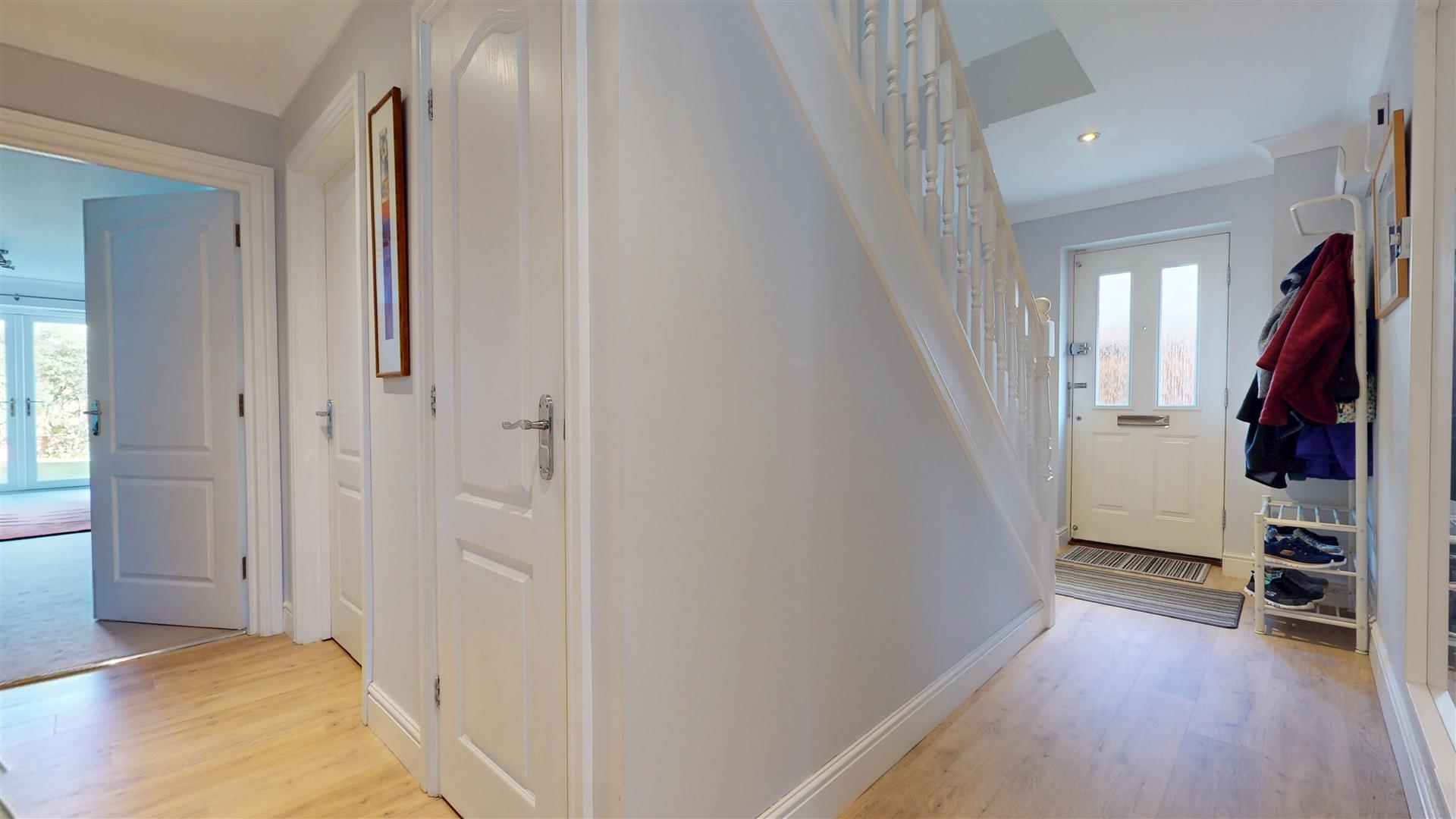 Double glazed composite door to front. Stairs to first floor landing with understairs storage cupboard. Radiator.