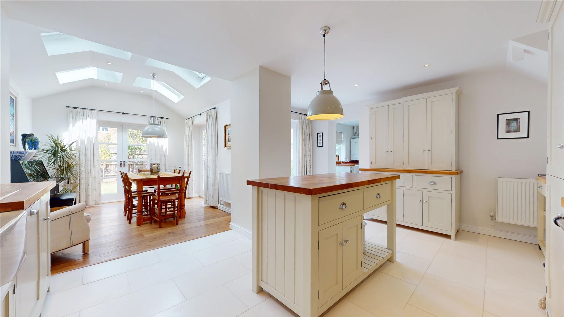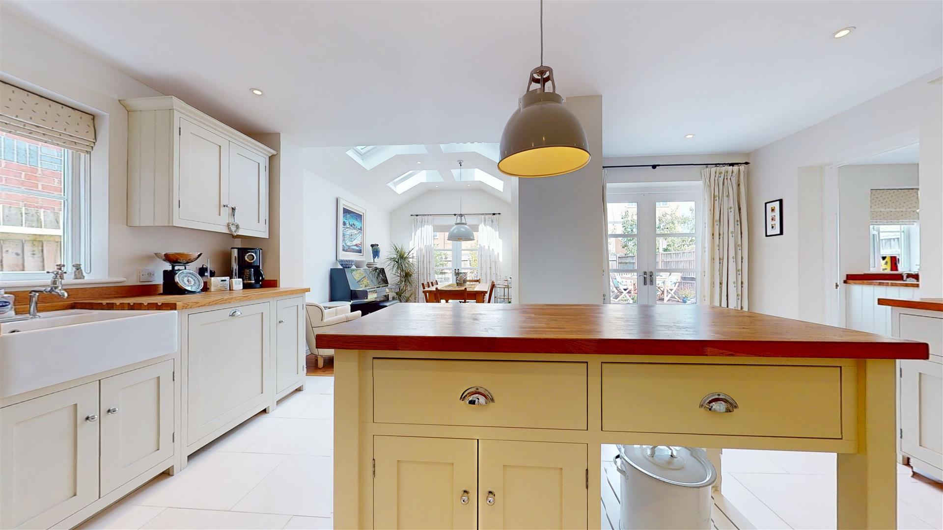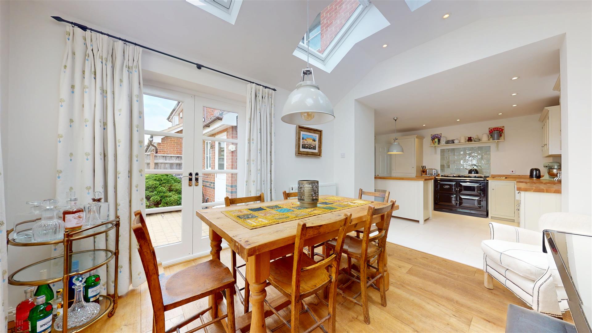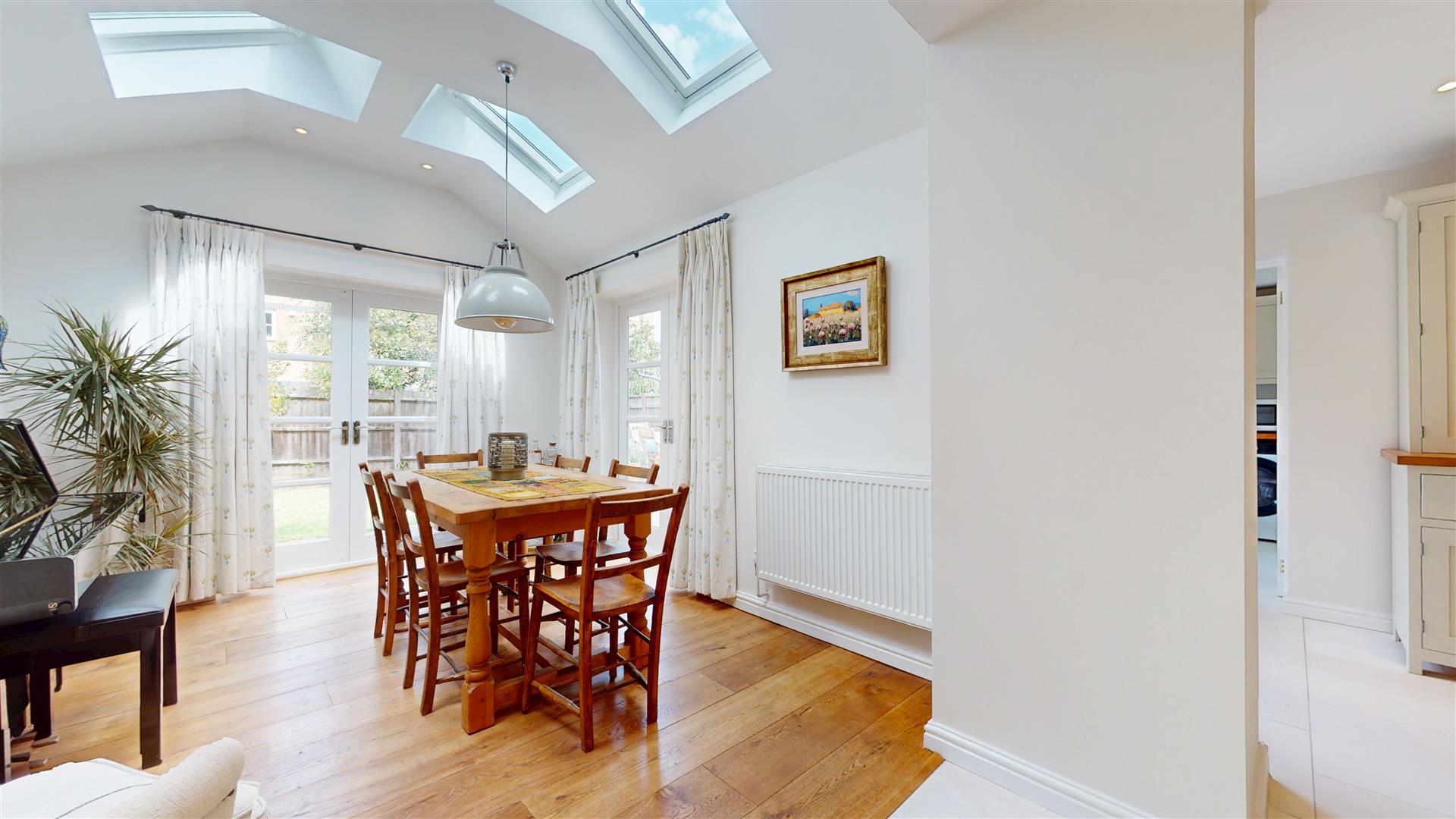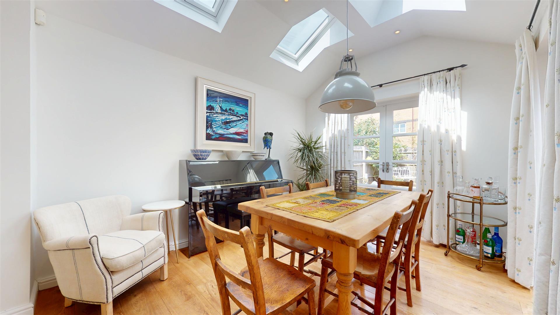 Dual aspect room with double glazed French doors to side and rear. Vaulted ceiling with double glazed remote control skylights. Radiator. Skimmed ceiling. Inset lighting.