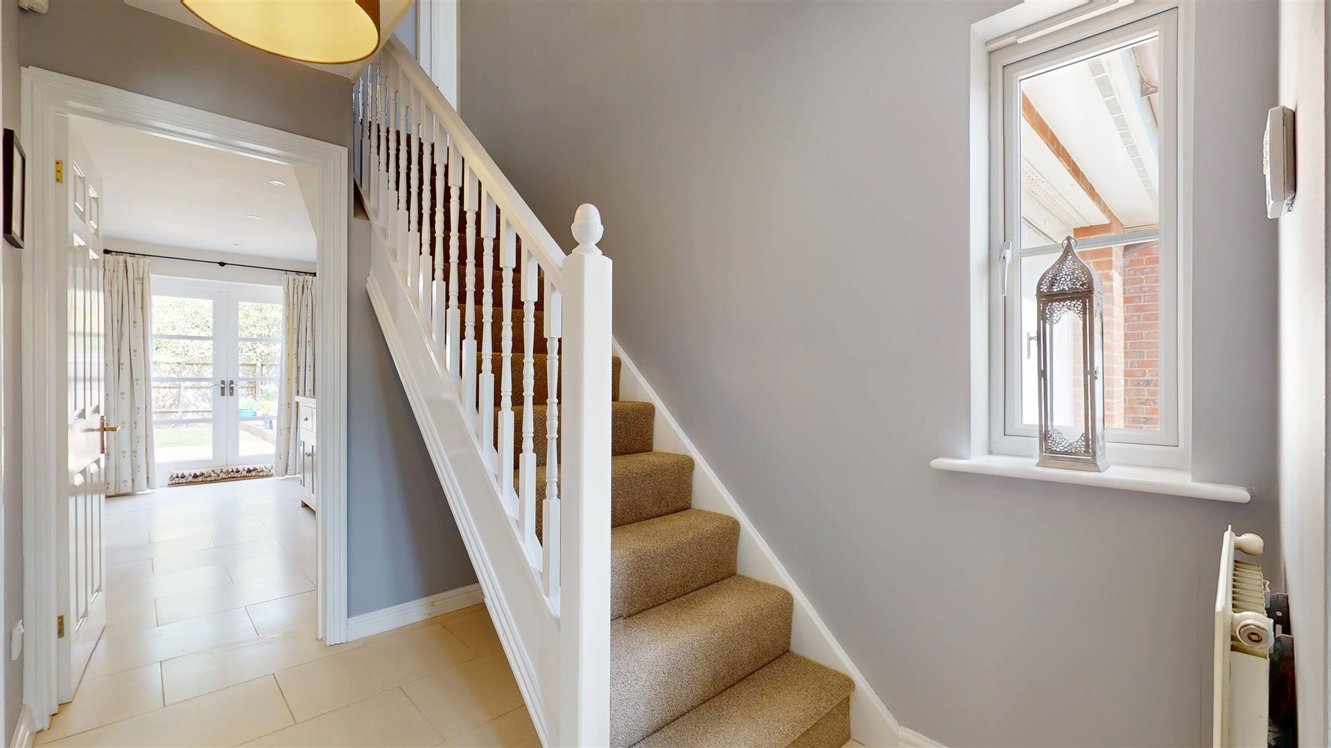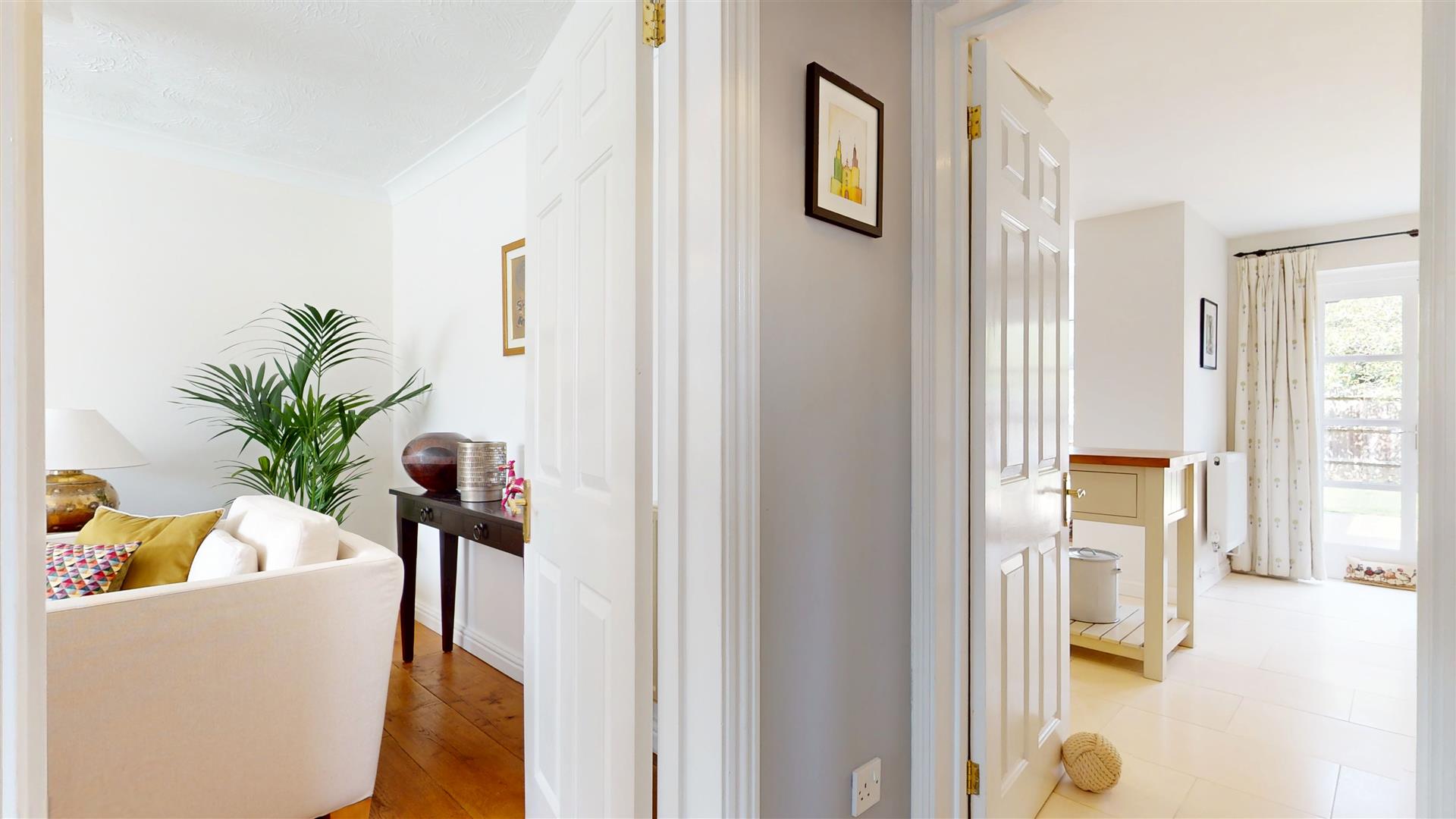 Front entrance door. Stairs to first floor. Doors to kitchen/family/dining room. Door to living room. Door to cloakroom. Double glazed window to side. Two radiators.