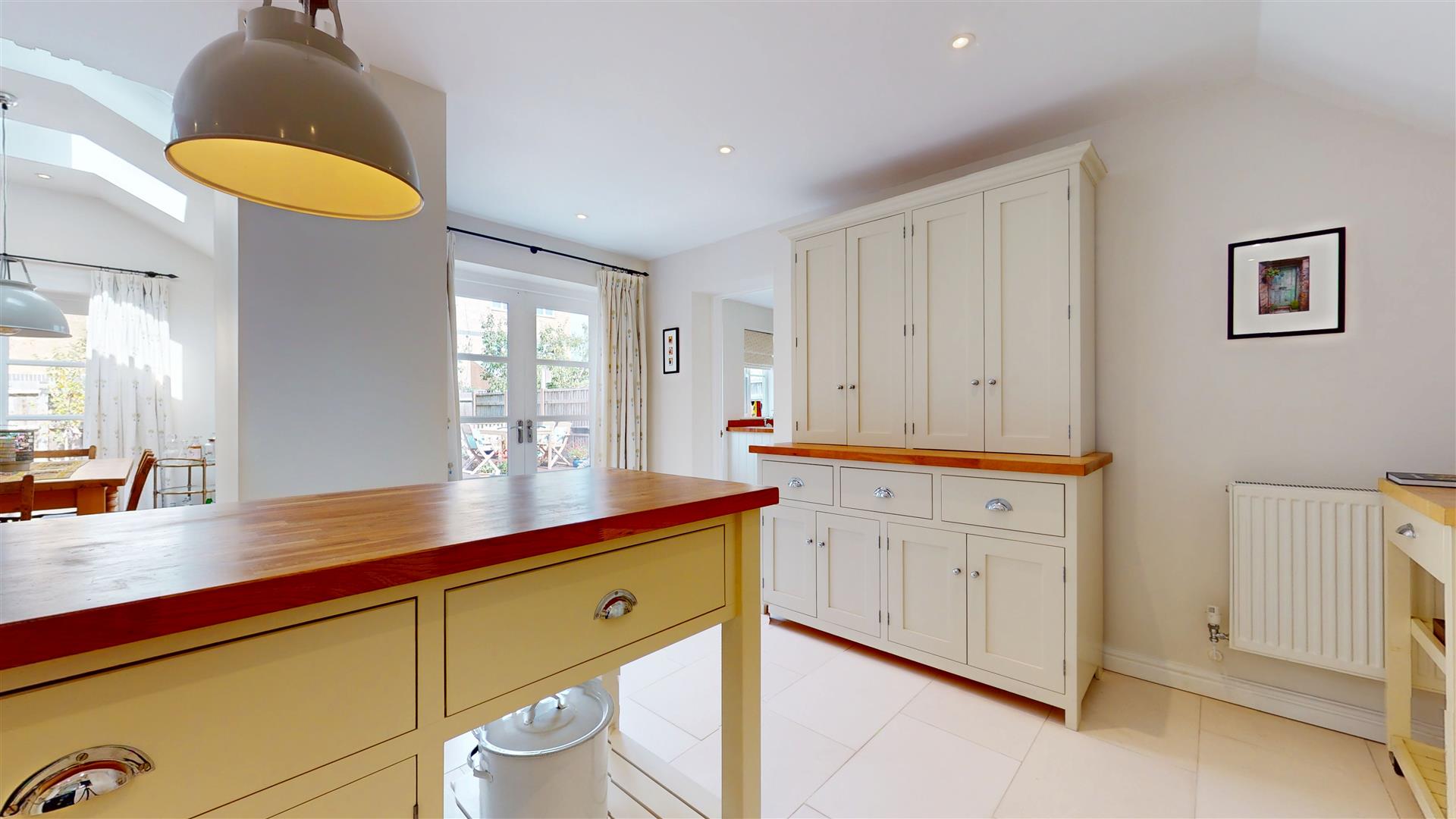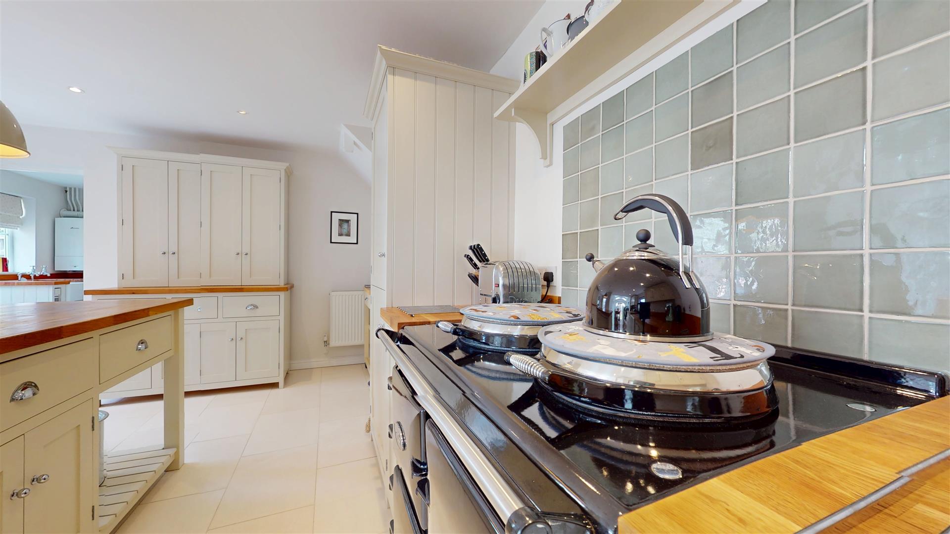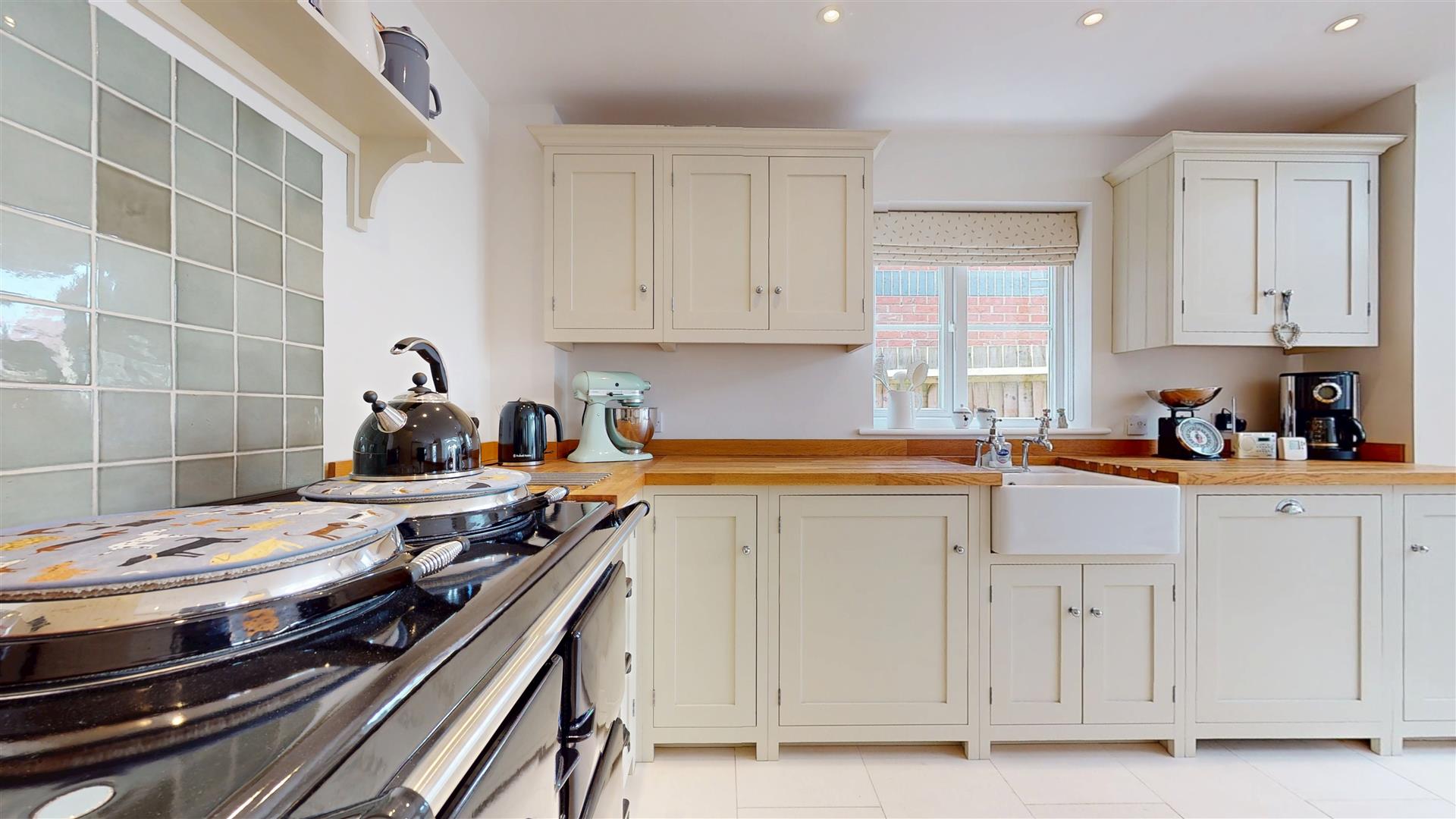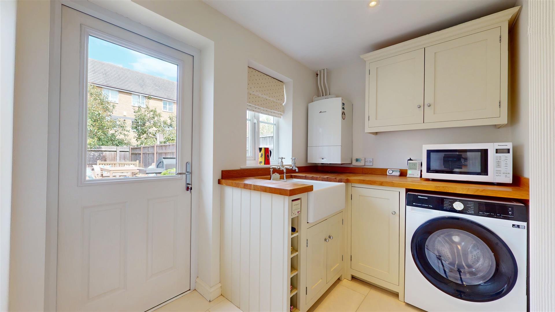 Re-fitted with a range of wall and base units with Butler style sink and drainer. Wall mounted boiler. Plumbing for washing machine. Double glazed window and door to rear. Feature radiator. Door to garage.
