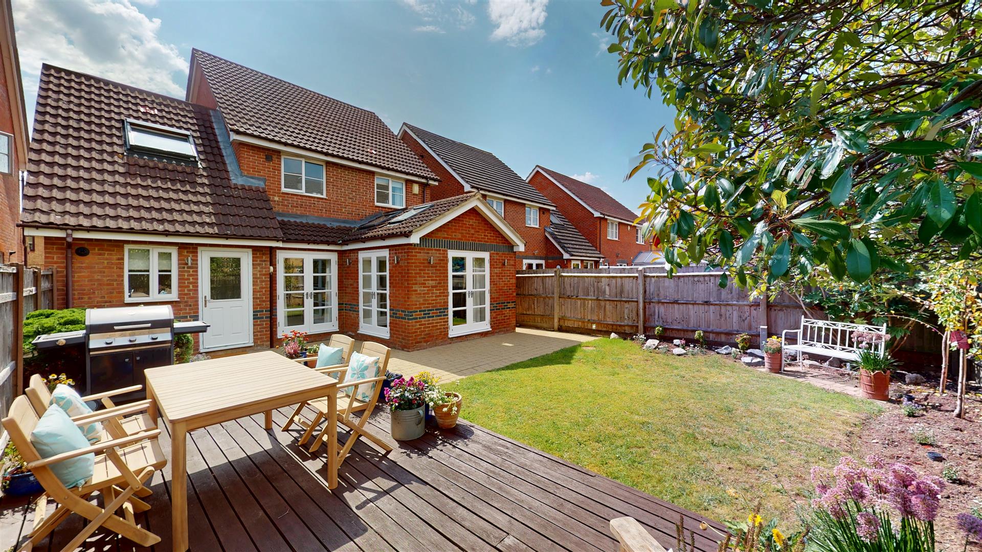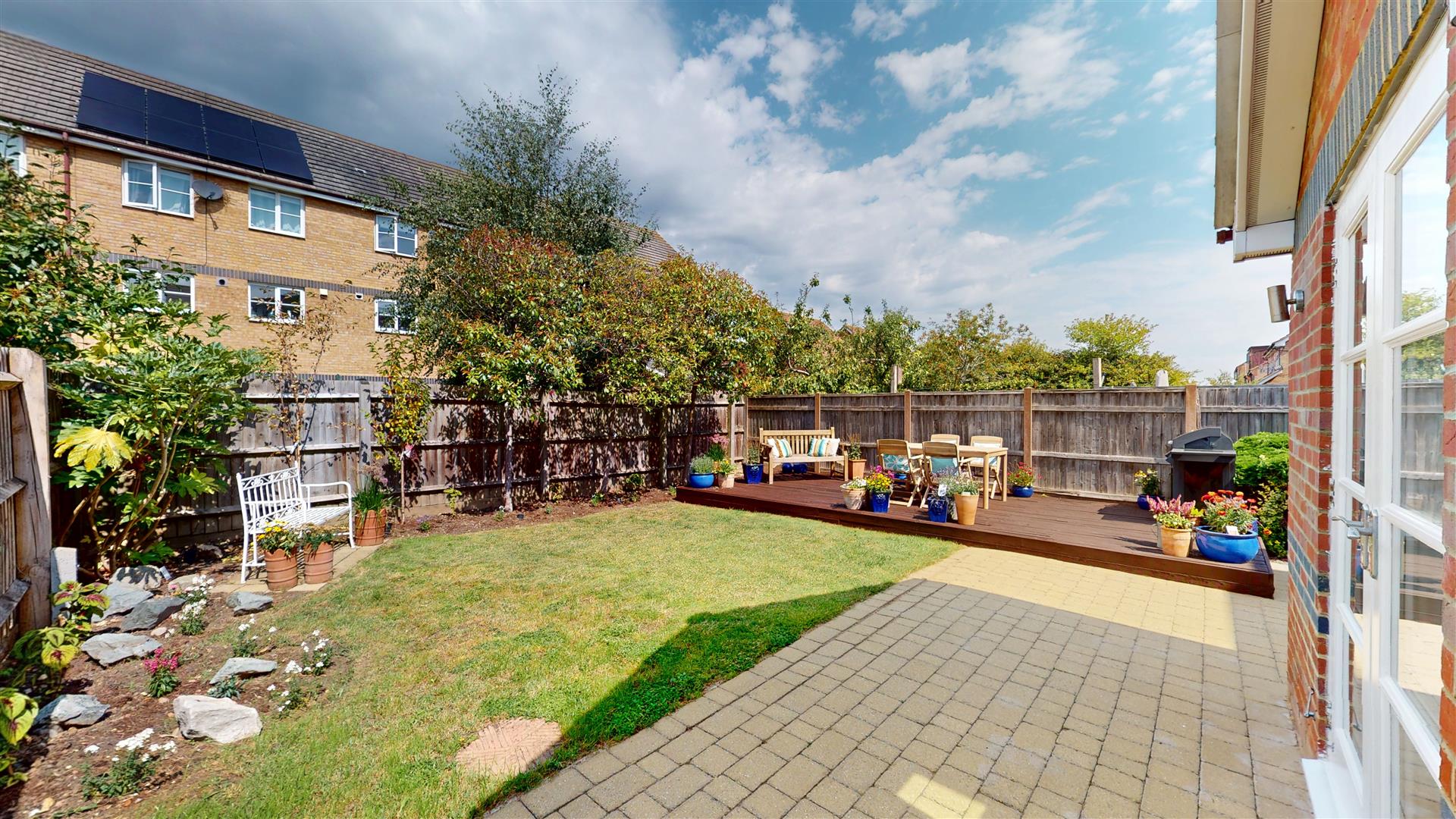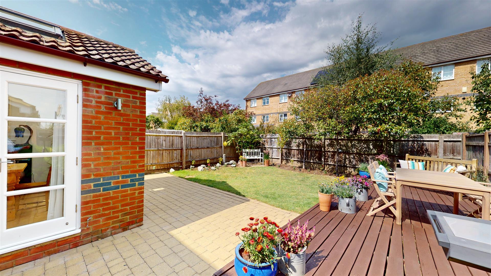 Enclosed and laid mainly to lawn with block paved patio area and decking area. Wooden fence surround. Outside lighting and tap. Gated side access. Outside power.