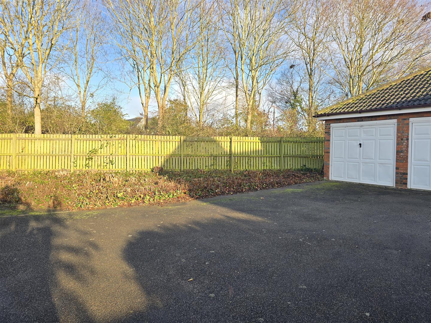 Up and over door the front. Door to garden. Driveway for two vehicles to the front.