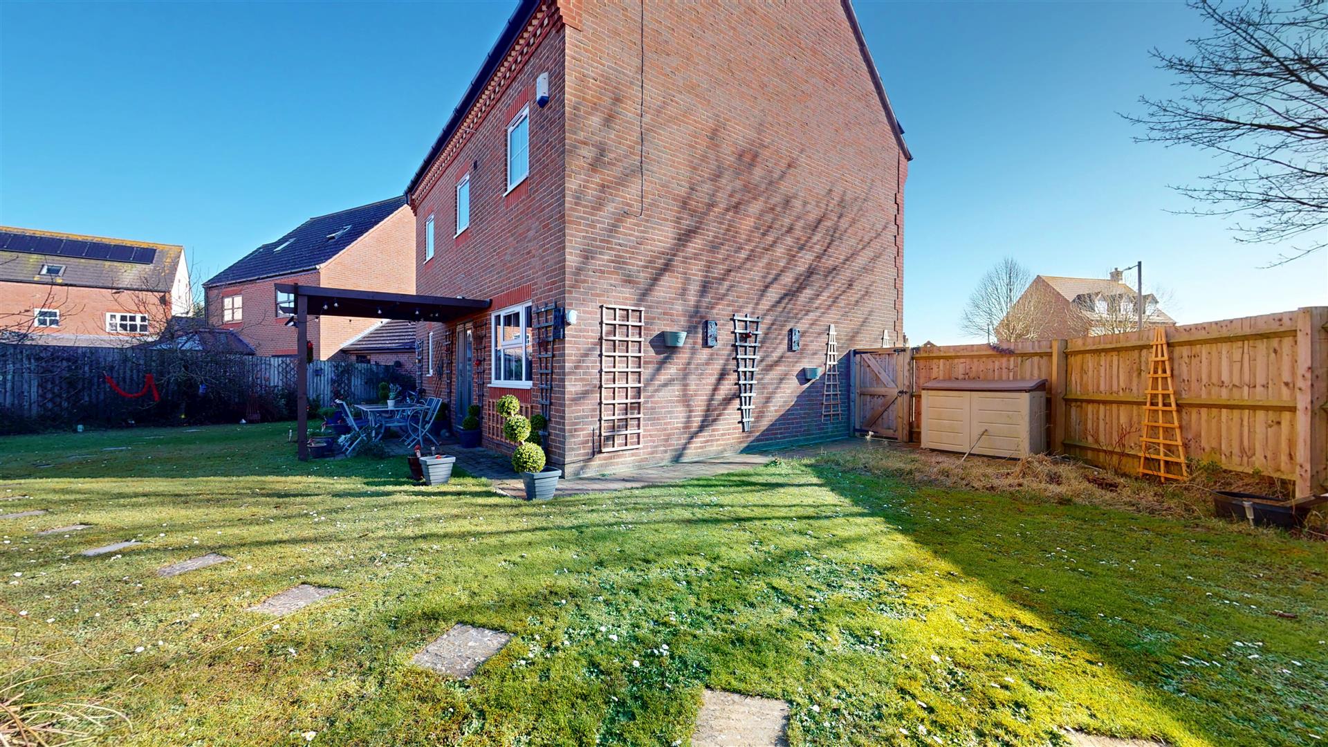 A generous size enclosed rear garden. Mainly laid to lawn with patio area. Door to double garage. Gated side access to front.