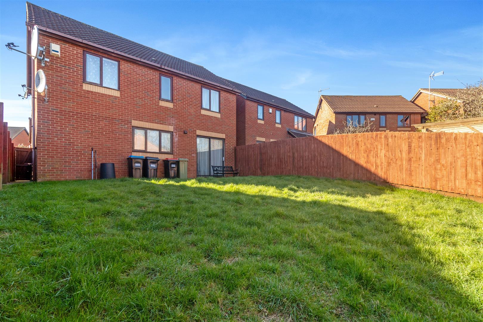 Enclosed rear garden, laid mainly to lawn with wooden fence surround. Gated side access.