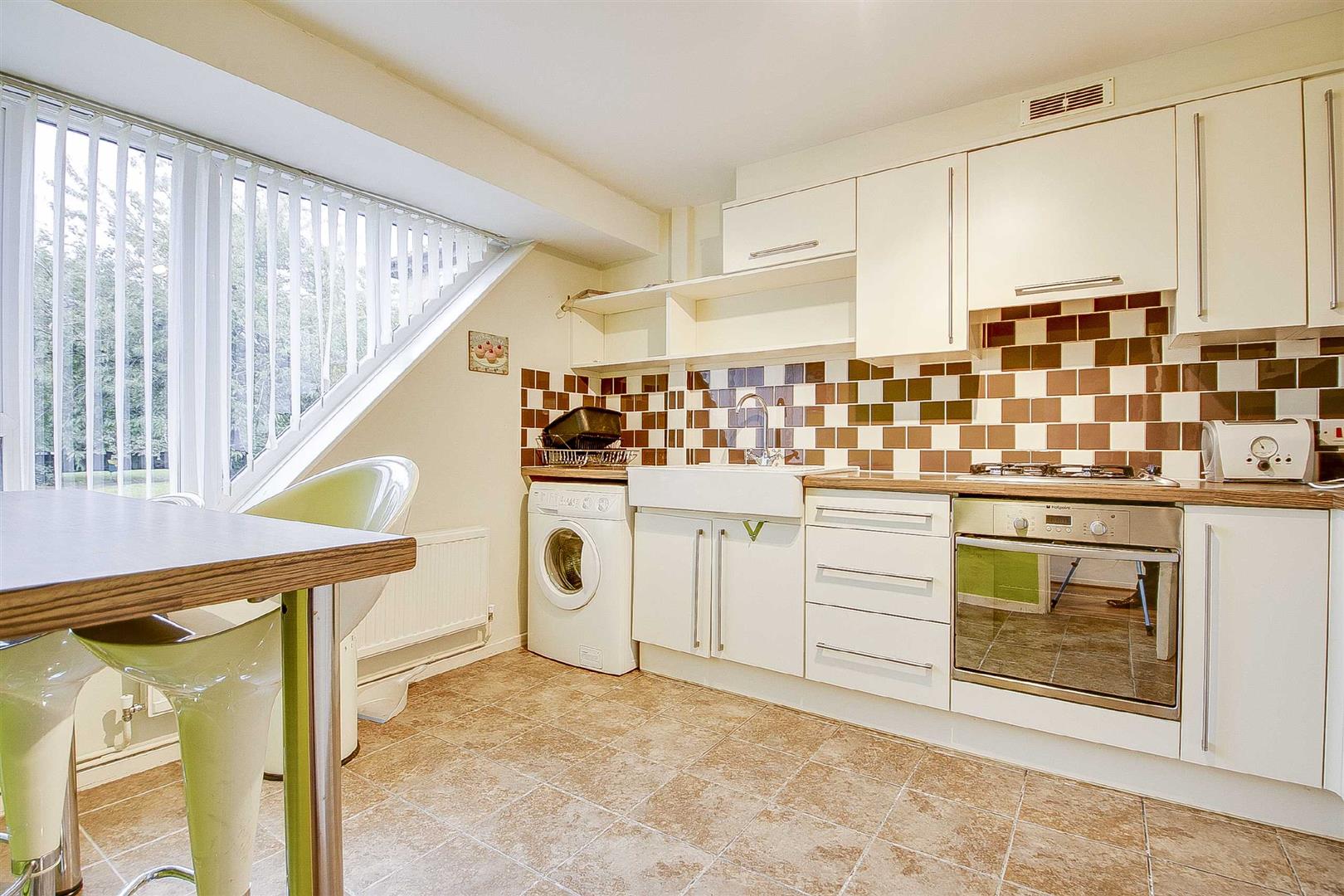 Kitchen fitted with a range of wall and base units. Work surfaces incorporating a double ceramic sink with stainless steel mixer tap. Integrated oven with gas hob and extractor over. Plumbing for washing machine and space for free standing fridge/ freezer. Splash back tiles. Breakfast bar. Radiator. Double glazed window to the front.