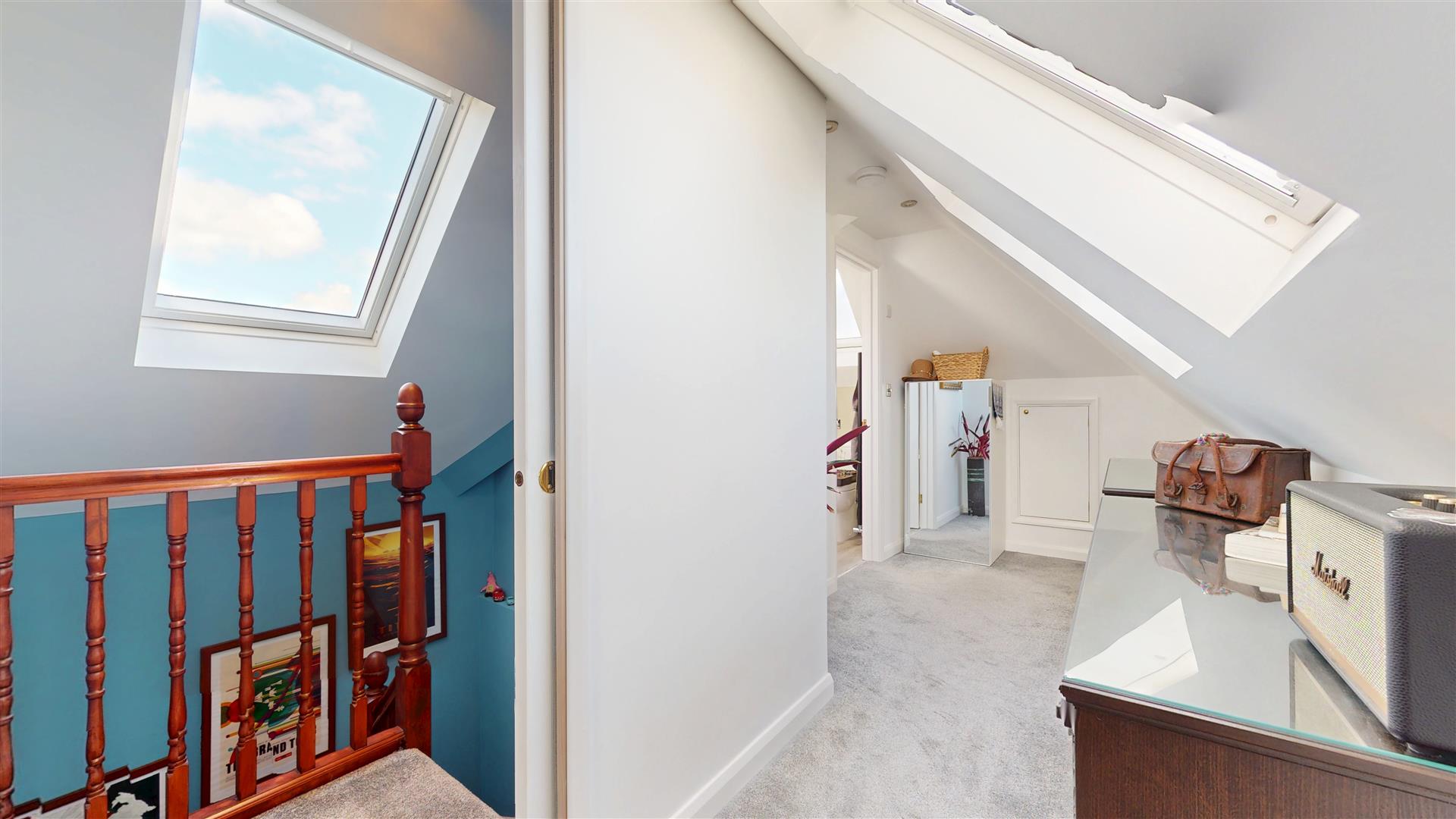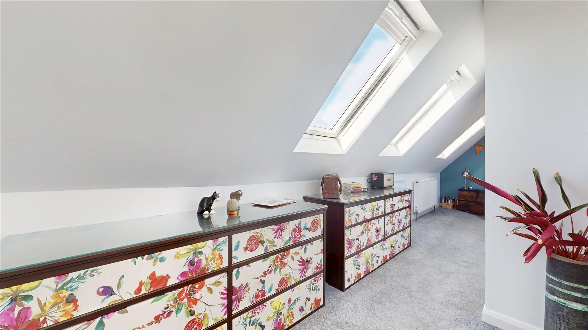 Plus 1.86 x 2.83 Dressing area. Measured into restricted head height. Three double glaze skylights to the rear double glaze skylight to front. Radiator. Eaves storage and dressing area. Door to ensuite.