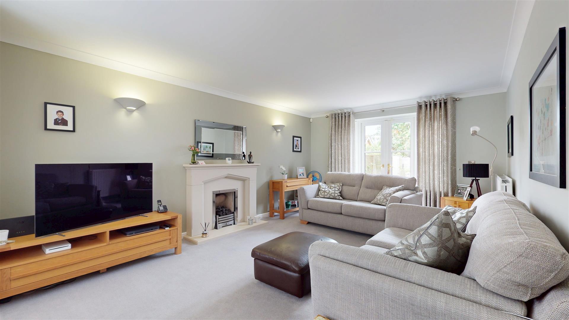 Double glazed bay window to front Double glazed French doors and windows to either side to rear Two double panelled radiators. Coving to skimmed ceiling Feature fireplace and surround. Karndean flooring.