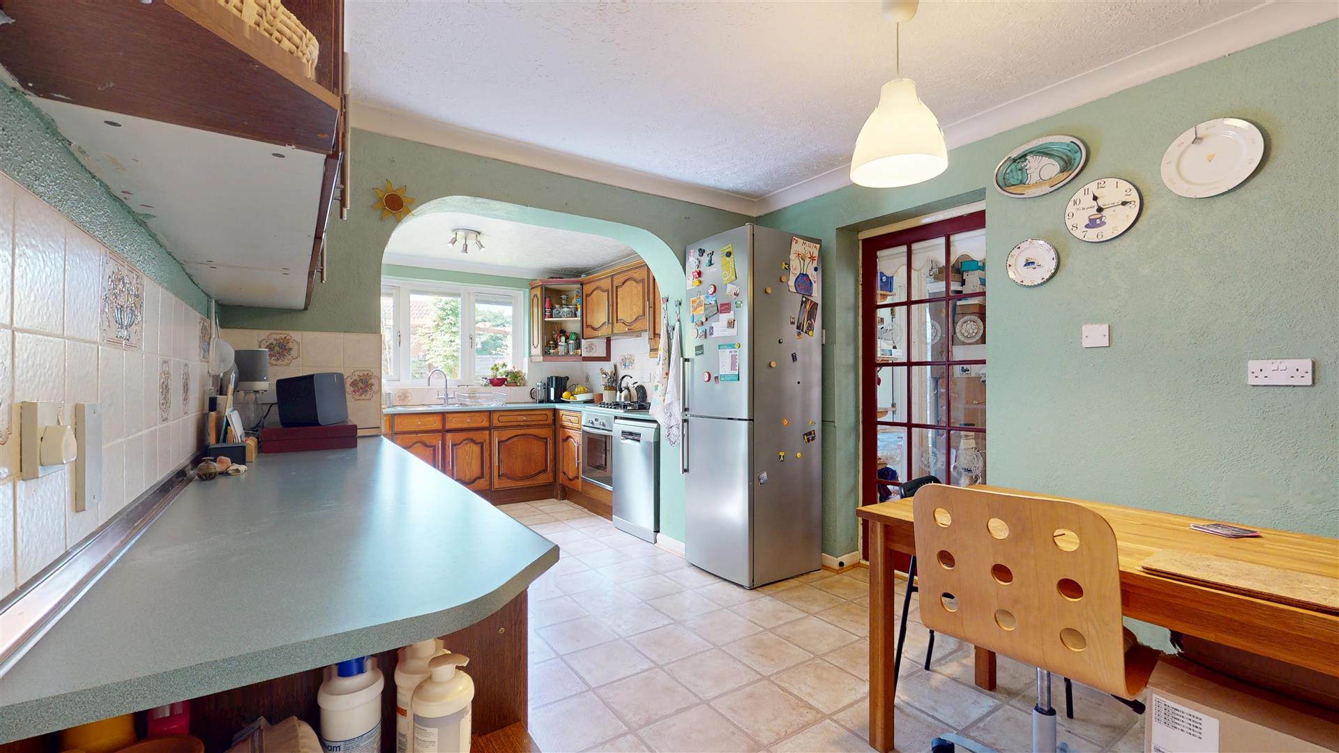 Double glazed window to rear aspect. Fitted with a range of wall and base units with worksurfaces incorporating sink with mixer tap and cutlery drainer. Fitted oven and hob with extractor hood. Door to conservatory. Radiator. Door to dining room and family room. Tiled splash backs.