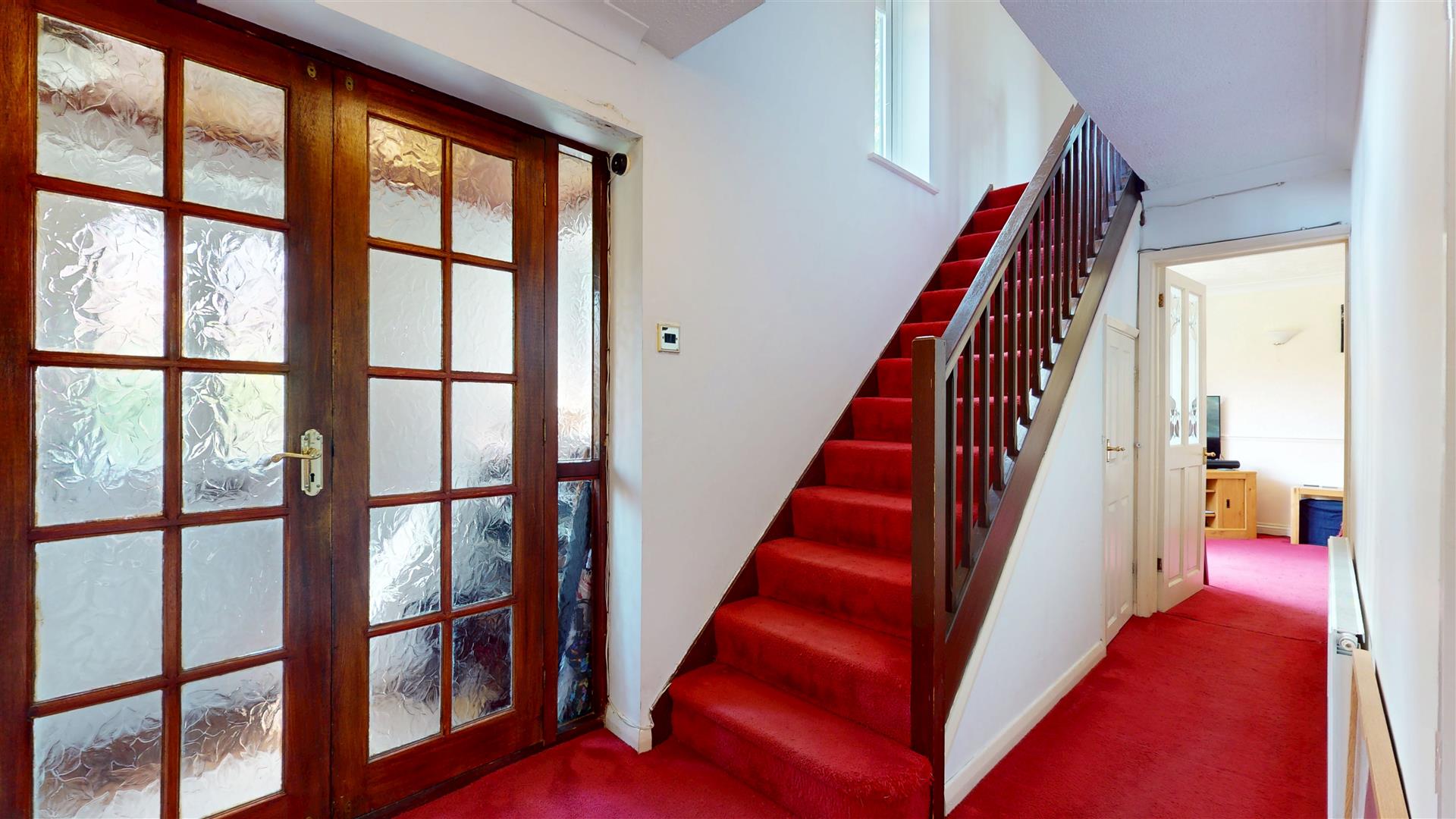 Stairs to first floor. Radiator. Door to kitchen/breakfast room, living room and cloakroom.