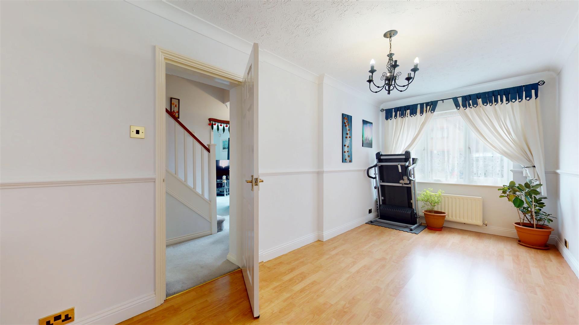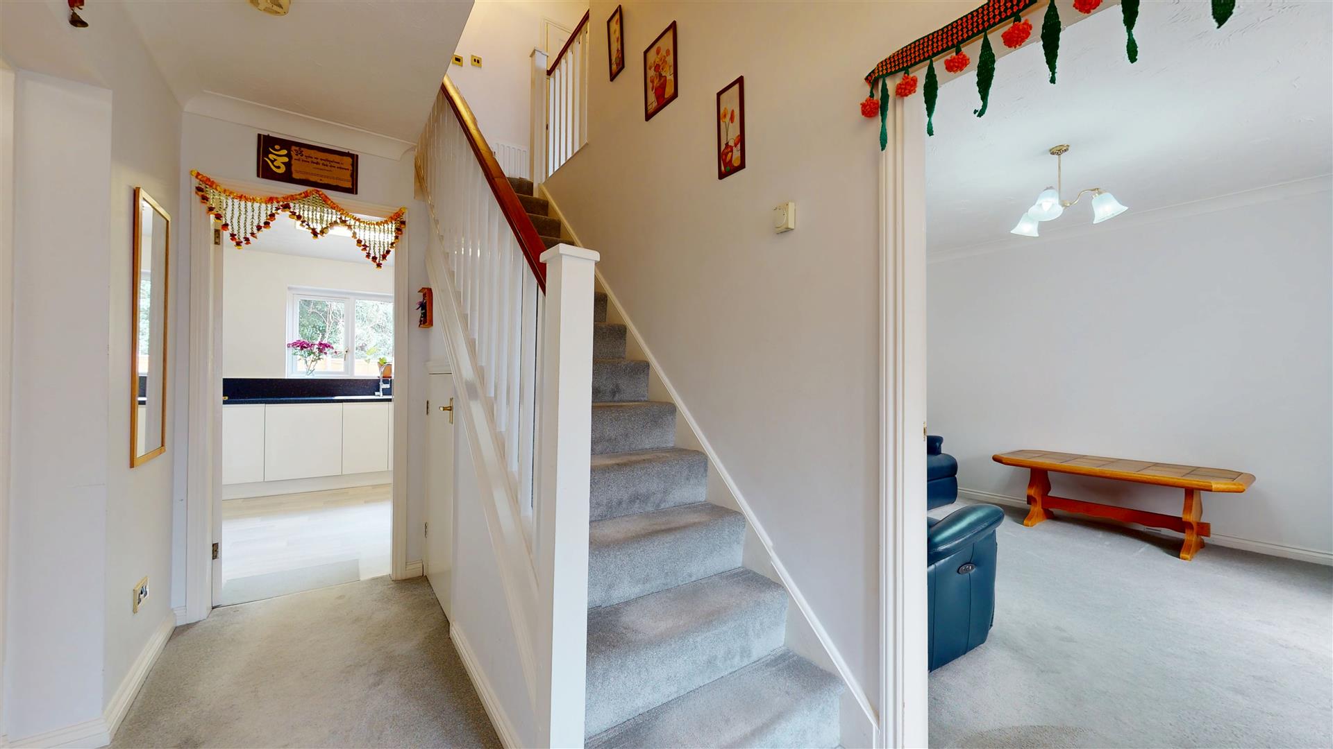 Entrance door. Understairs storage cupboard. Door to re-fitted kitchen/breakfast room, living room, family room and cloakroom.