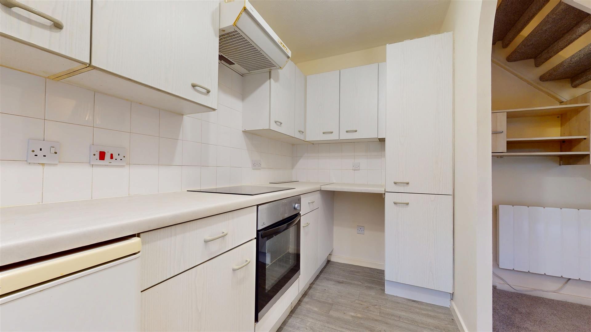 Double glazed window to rear. Fitted wall and base units with worksurfaces incorporating sink drainer unit. Electric oven and hob with extractor hood over. Space for under counter fridge and freezer. Plumbing for washing machine. Wall heater.