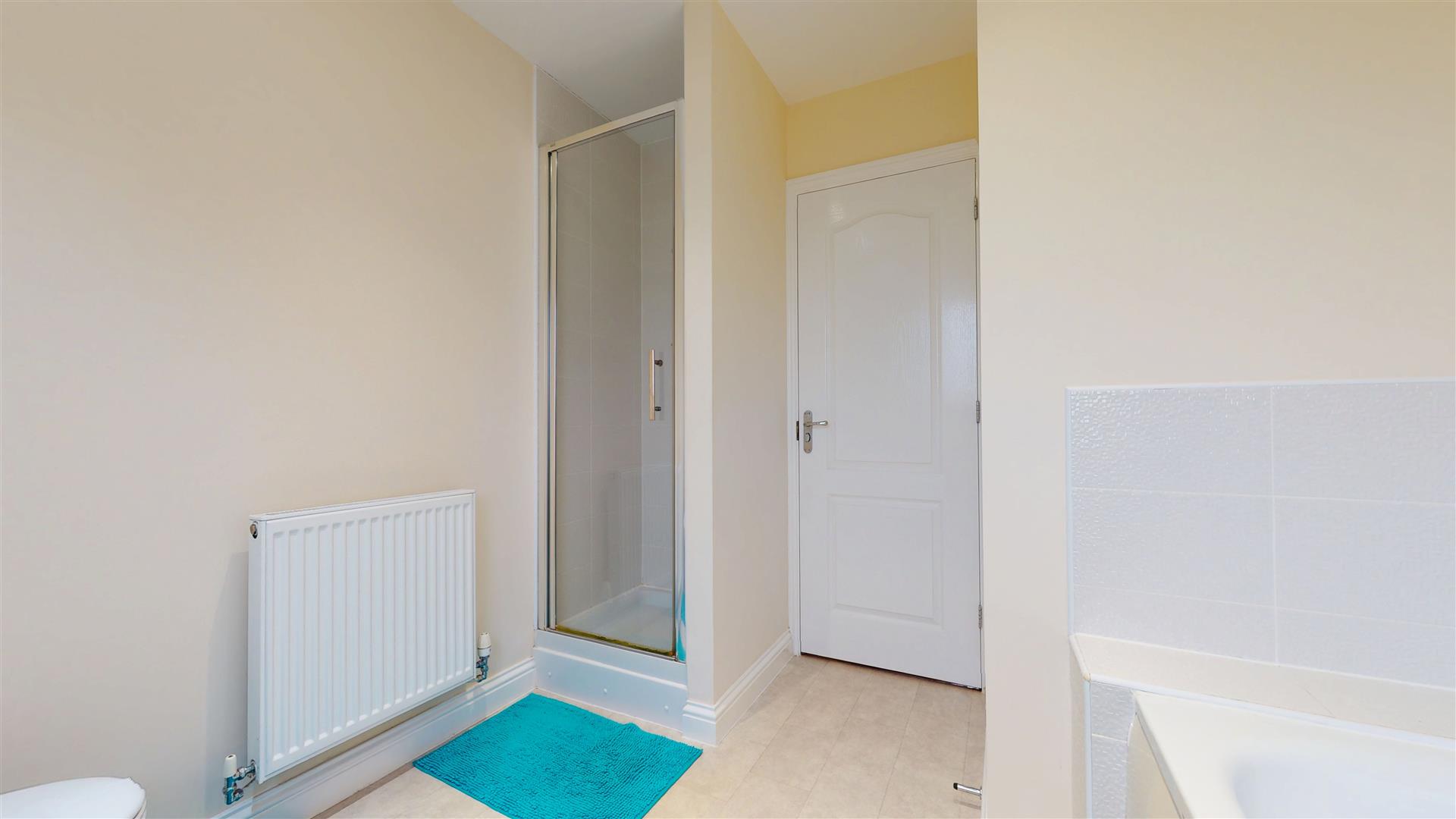 Double glazed obscure window to rear. Four piece suite comprising shower cubicle with mains shower. bath with mixer tap and shower over, wash hand basin and close coupled wc. Cabinet. Extractor fan. Shaver point. Radiator.